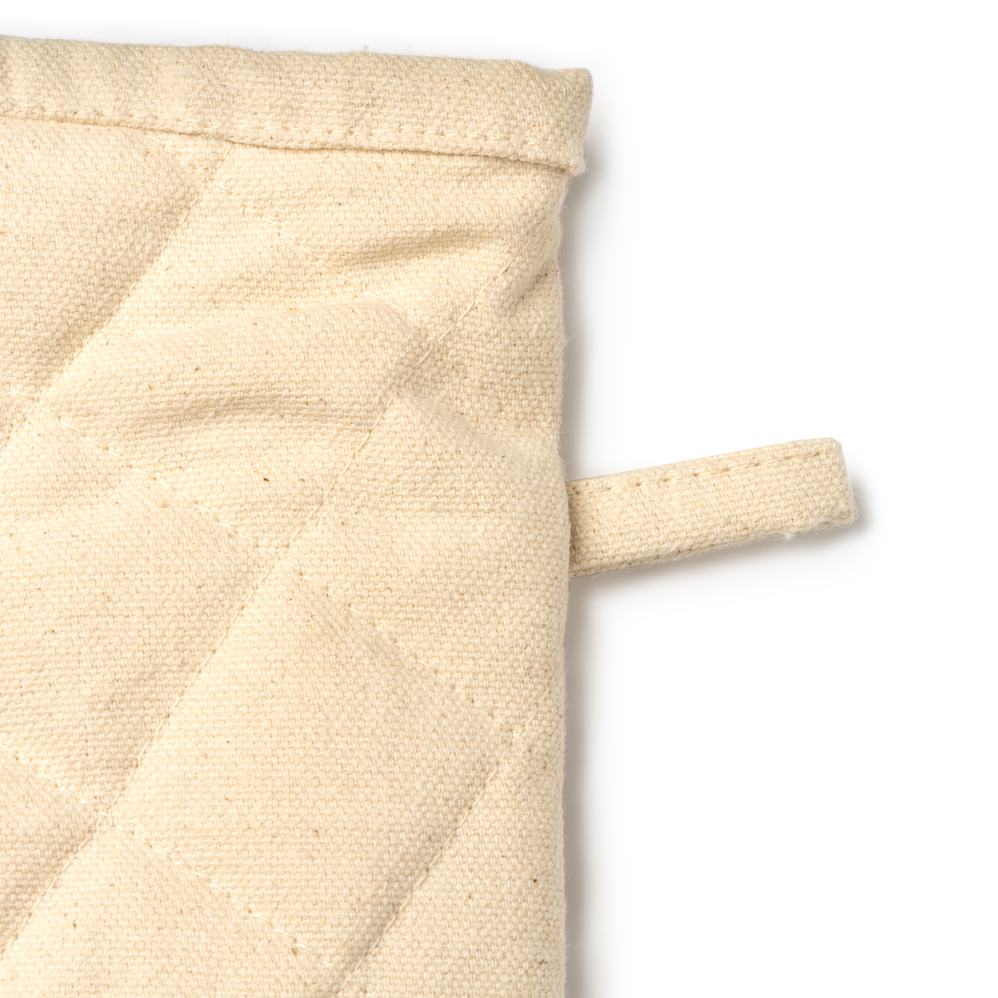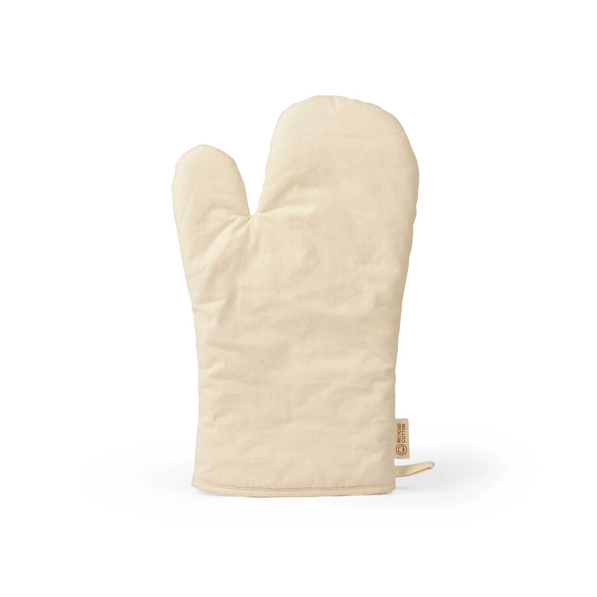Кухонные рукавицы из 100% переработанного хлопка, с плоской стороной, идеально подходящей для маркировки, и ремнем для подвешивания.