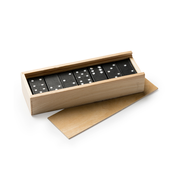 Домино из дерева. 28 штук в коробке с раздвижной крышкой.