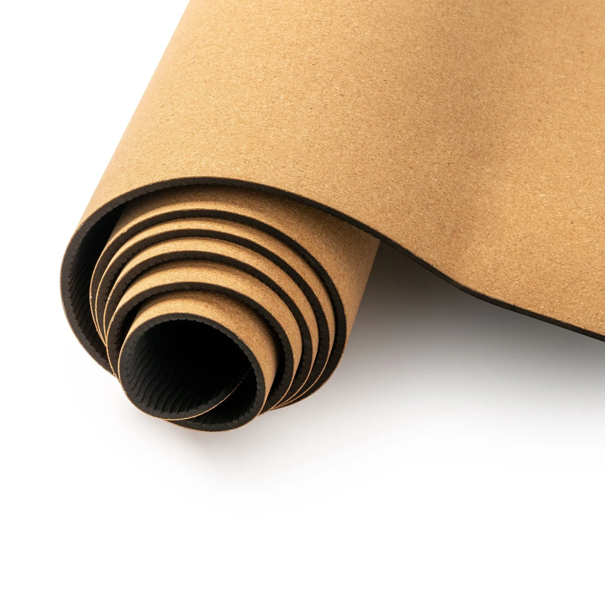 Коврик для йоги из натуральной пробки с противоскользящим основанием и ремнем для переноски.