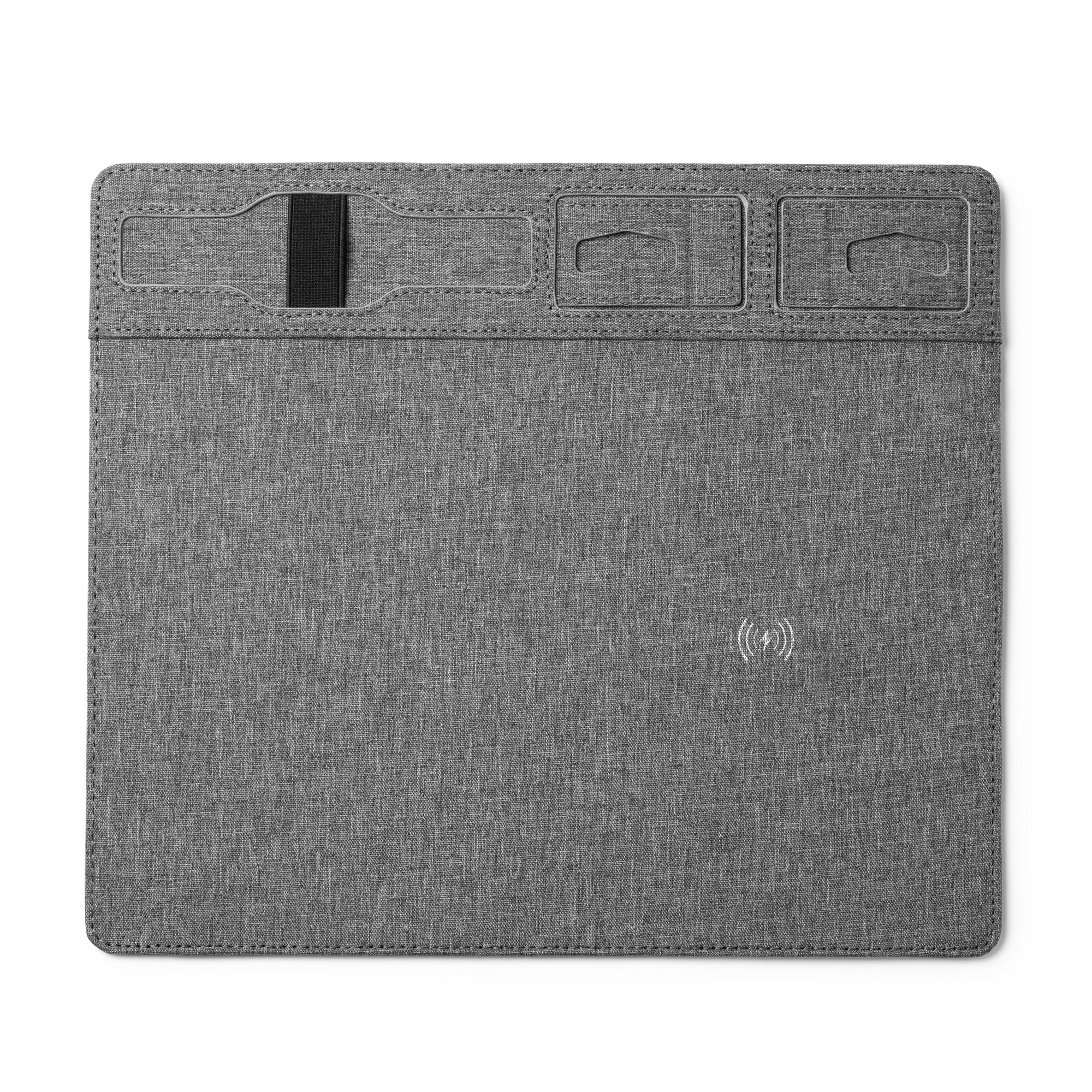 Коврик для мыши из RPET со встроенным беспроводным зарядным устройством мощностью 10 Вт. Размер коврика составляет 31*27*0,8см. В комплект входят подставка для мобильного телефона и для ручки.