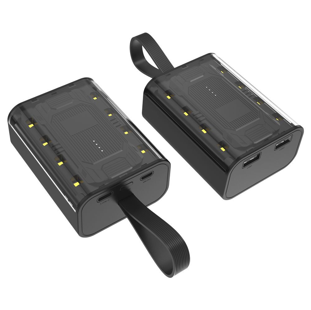 Откройте для себя стиль и функциональность с нашим внешним аккумулятором емкостью 5000 мАч — идеальным спутником для активных людей и тех, кто ценит современный дизайн. Его уникальная лицевая панель из прозрачного пластика позволяет насладиться футуристичным внутренним дизайном, создавая ощущение технологического будущего. Встроенные по краям светодиоды выполняют функцию фонарика при необходимости (Светодиоды имеют 4 режима свечения: слабо яркий, яркий, очень яркий, и мигающий. Включение светодиодов осуществляется двойным нажатием на кнопку вкл/выкл аккумулятора, и последующими одиночными нажатиями на ту же кнопку для переключения режимов свечения).
