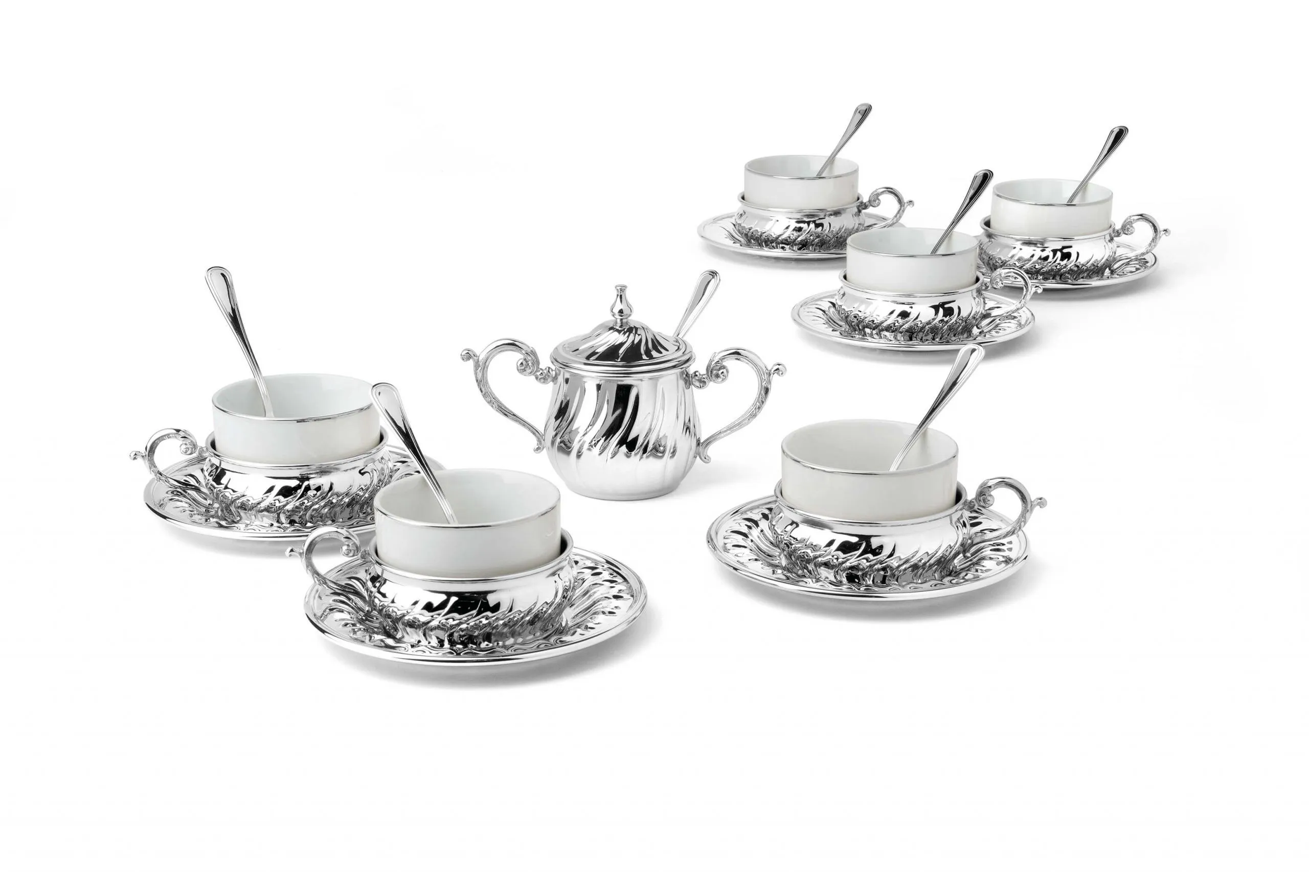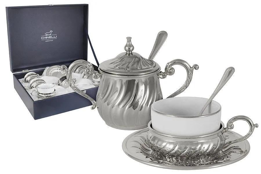 Элитные наборы для горячих напитков считаются традиционными подарками молодожёнам, юбилярам или близким людям, начинающим новый жизненный этап. Наибольшей востребованность пользуются красивые чайные сервизы на 6 чашек , ведь они символизируют уют и домашнее тепло. Изделия итальянской компании Chinelli придадут даже самому обычному чаепитию особой атмосферы элитарности и сделают любой напиток намного вкуснее. Коллекция CHINELLI – это плавные линии, безупречное качество и оригинальный дизайн. Изящная отделка серебром делает каждый предмет идеальным украшением вашего интерьера. Марка CHINELLI это 40 лет бесценного опыта ручного производства, безупречного итальянского вкуса и европейского качества. Бренд воплощает в себе стиль и качество, соответствующий стандарту "Made in Italy". Компания расположена в долине Lumezzane провинции Brescia (Италия), которая с давних времен славится высоким мастерством в области обработки металла. На протяжении многих лет компания совмещает искусную работу ремесленников с промышленным производством. Характерной чертой CHINELLI является внедрение новейших технологий и способность быстро адаптироваться к изменчивости потребности рынка. Изделия марки CHINELLI с легкостью превратят встречу с друзьями в непревзойденную атмосферу праздника и уюта. Они отличаются безупречным качеством, роскошью исполнения и одновременно классической простотой стиля. Изделия изготавливаются из хрусталя, стекла, металла и даже фарфора, в декорировании используется покрытие серебром и золотом, инкрустация кристаллами Swarovski. Все изделия упакованы в фирменную подарочную упаковку с логотипом CHINELLI и сертификатом внутри.