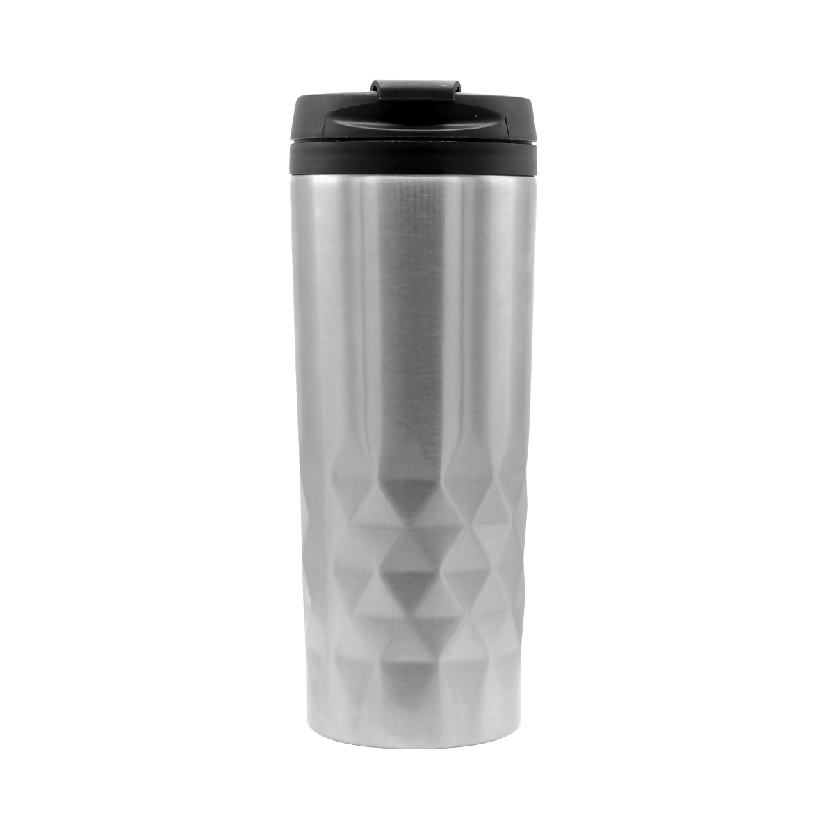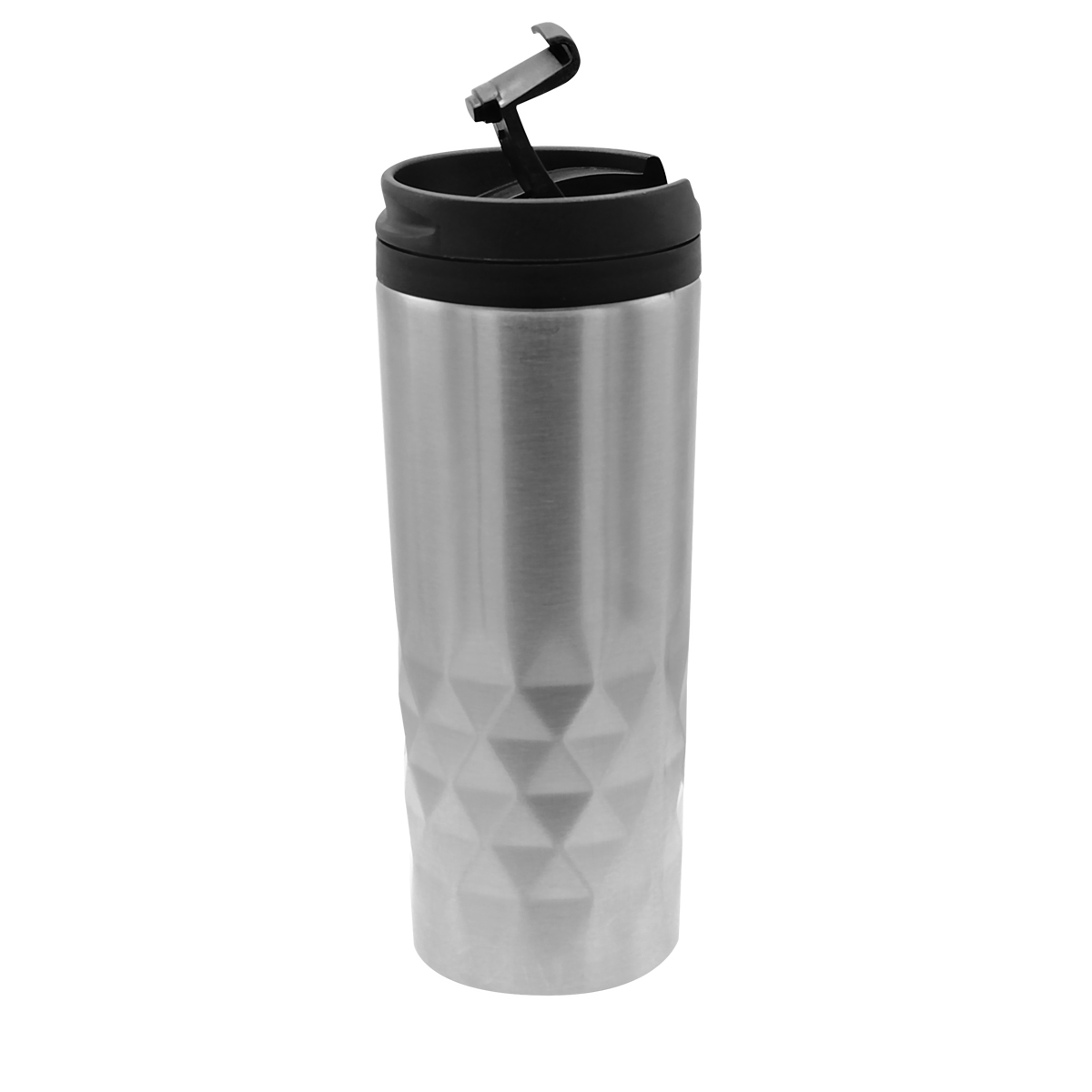 Стильная термокружка изготовлена из нержавеющей стали и дополнена оригинальными геометрическими деталями. Внутренняя колба сделана из пластика. Удобная крышка не даст расплескаться напитку. Объем термокружки – 500 мл.