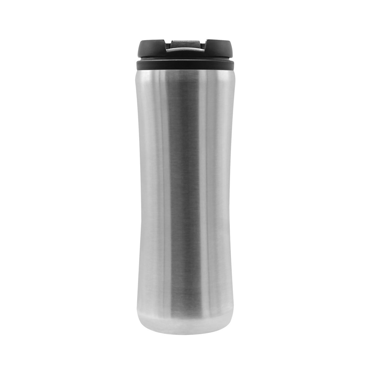 Термокружка изготовлена из нержавеющей стали. Внутренняя колба сделана из пластика. Вакуумная конструкция. Откидной клапан позволяет пить, не снимая крышку, что помогает дольше сохранить начальную температуру напитка. Объем термокружки – 500 мл.