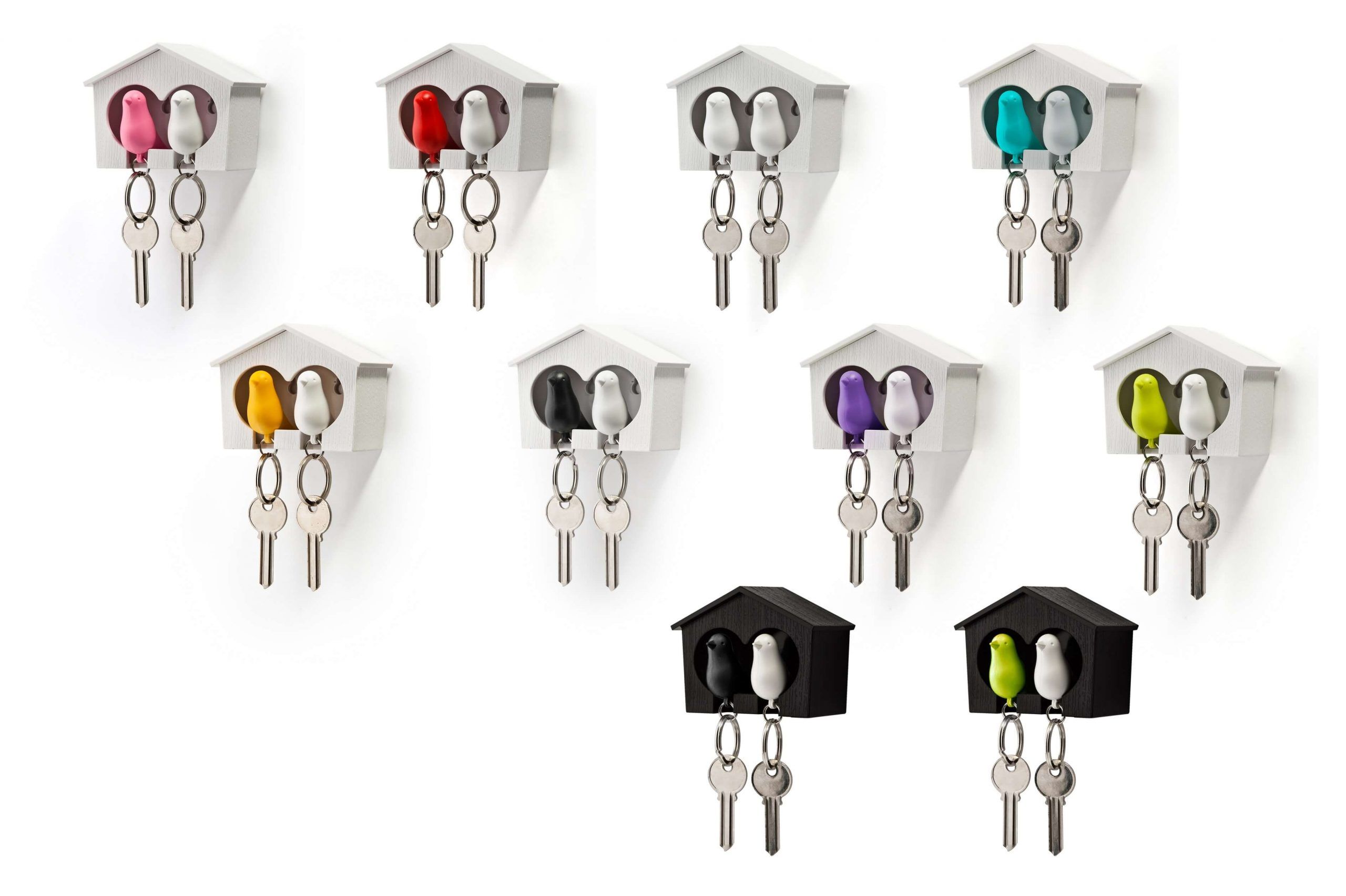 Замечательная идея от дизайнеров тайского бренда Qualy ― специальный домик для персональных хранителей ключей в виде птичек! Теперь Вы всегда будете знать, где ключи, а не искать их на полках перед выходом из дома. Держатель крепится к стене на специальный надежный скотч , либо вешается на два шурупа. Удобный брелок легко помещается внутрь домика, быстро находится в сумке или в кармане, а главное – он является еще и свистком! Так что можно оповестить домашних о своем приходе с работы:) В данном случае мы предлагаем Вам семейный вариант ― птичка для нее и для него. Сладкая парочка в домике будет обозначать, что семья в сборе! Основные характеристики: