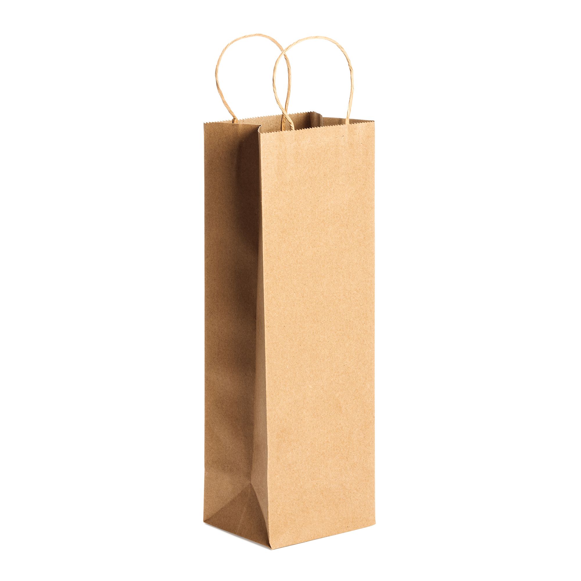 Бумажный пакет плотностью 100 г/м² натурального цвета. Усиленные короткие ручки витой конструкции. Идеально подходит для бутылок.