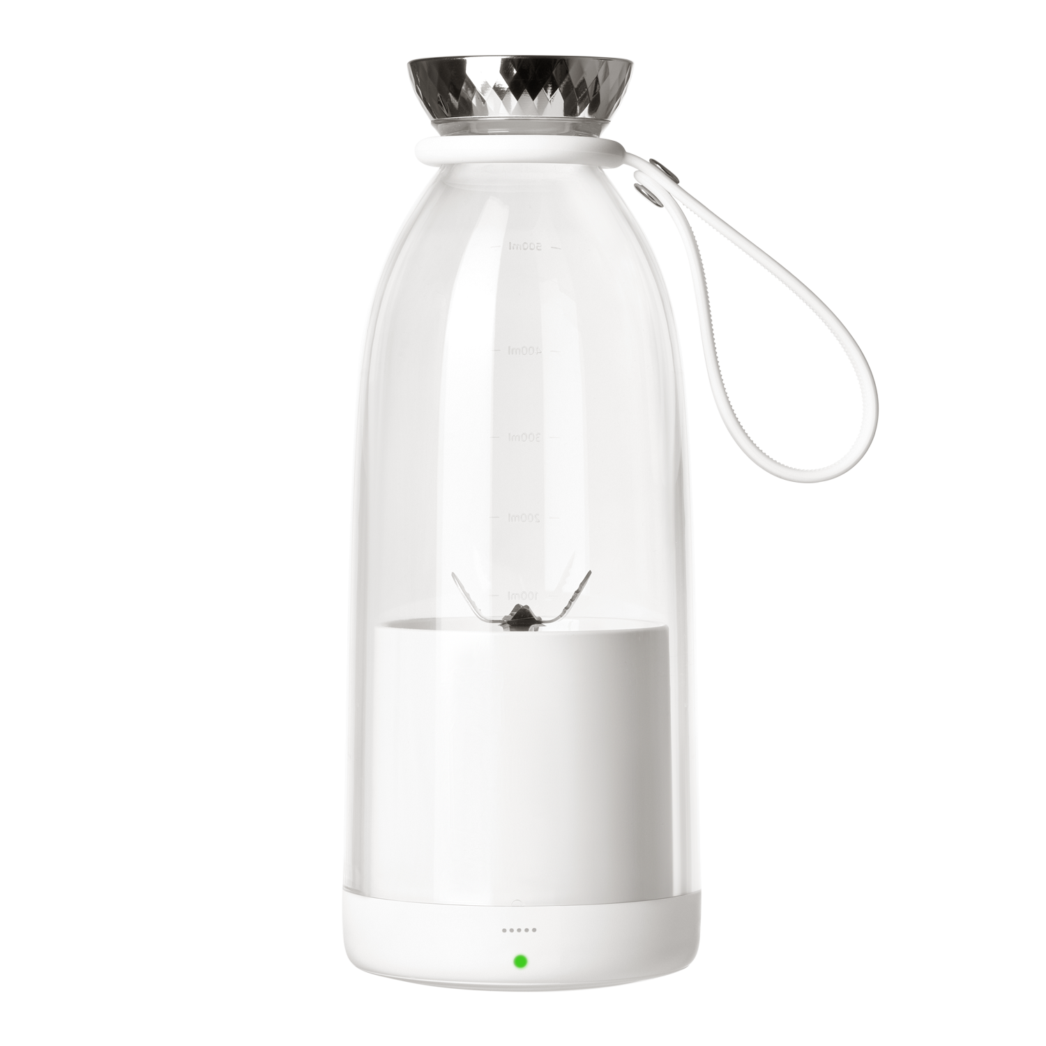 Количество фруктов и жидкости, добавленных в емкость блендера, не должно превышать уровень силиконового ремешка.