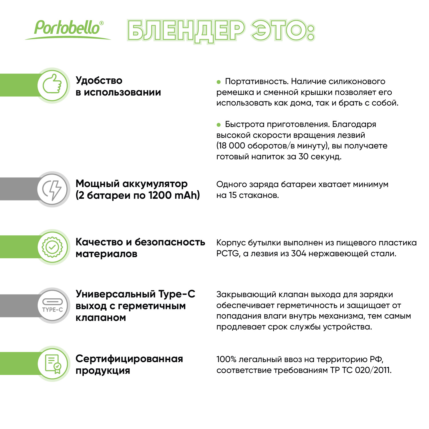 Портативный блендер FRUTTA – незаменимая вещь для современного образа жизни. Он уникален, так как сочетает в себе следующие особенности.