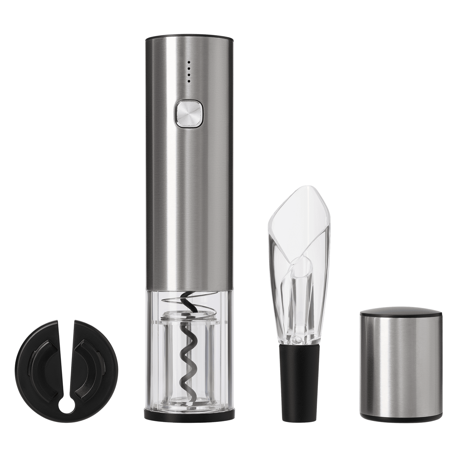 В стильной упаковке вы найдете все необходимое для идеального винного вечера: электрический штопор, вакуумную пробку, аэратор и нож для срезания фольги. Этот набор станет прекрасным корпоративным подарком или отличным дополнением к домашнему бару.