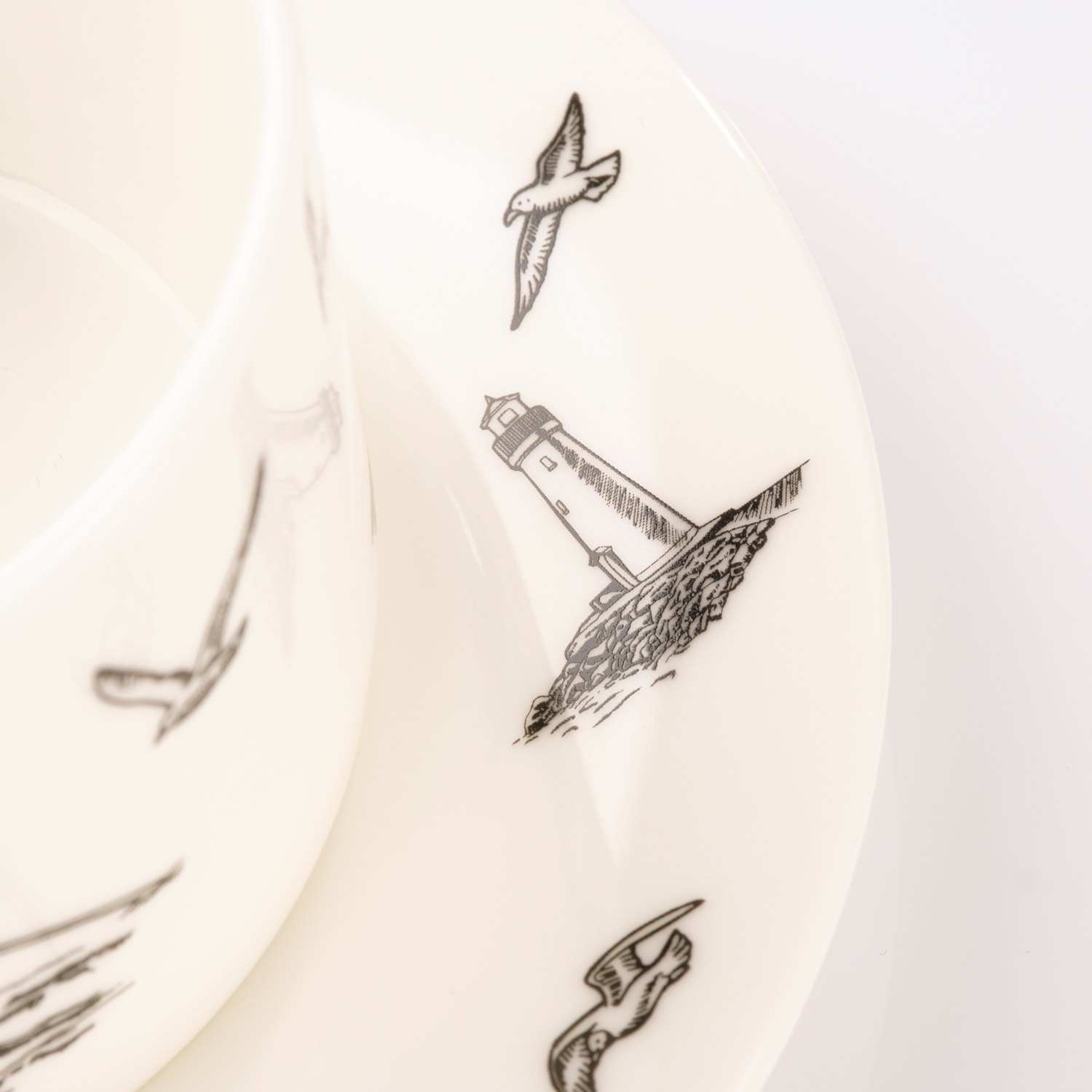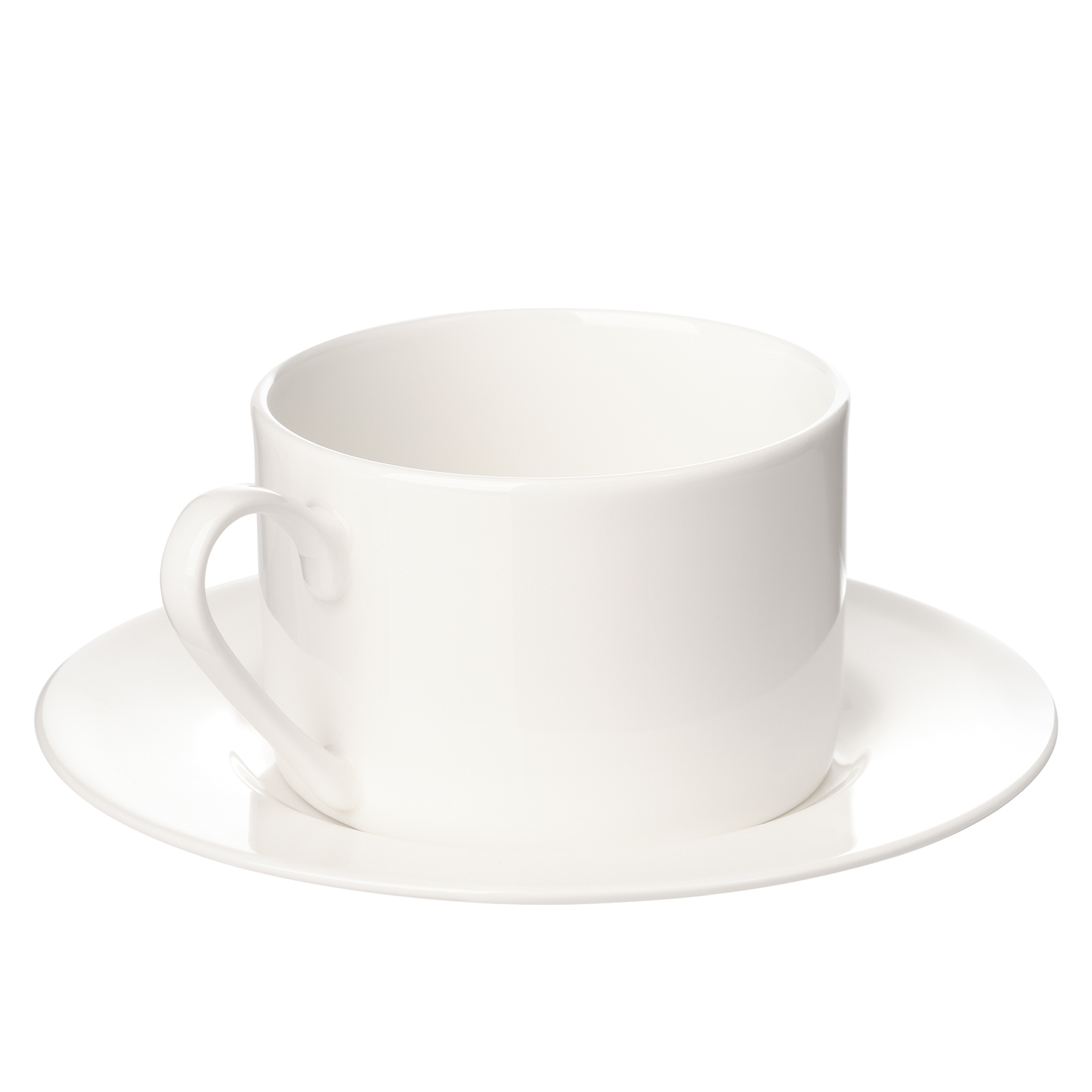 Простая по форме чайная пара «Mokko» изготовлена из костяного фарфора.
