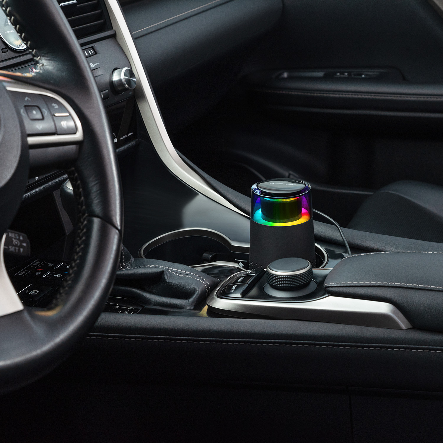 Мини-очиститель воздуха с радужной LED-подсветкой. Высококачественный фильтр с тройной системой фильтрации в сочетании с высокоскоростным вентилятором очищают воздух, поглощая и фильтруя различные загрязнители через гладкую аэродинамическую трубу. Освежение воздуха за несколько минут.