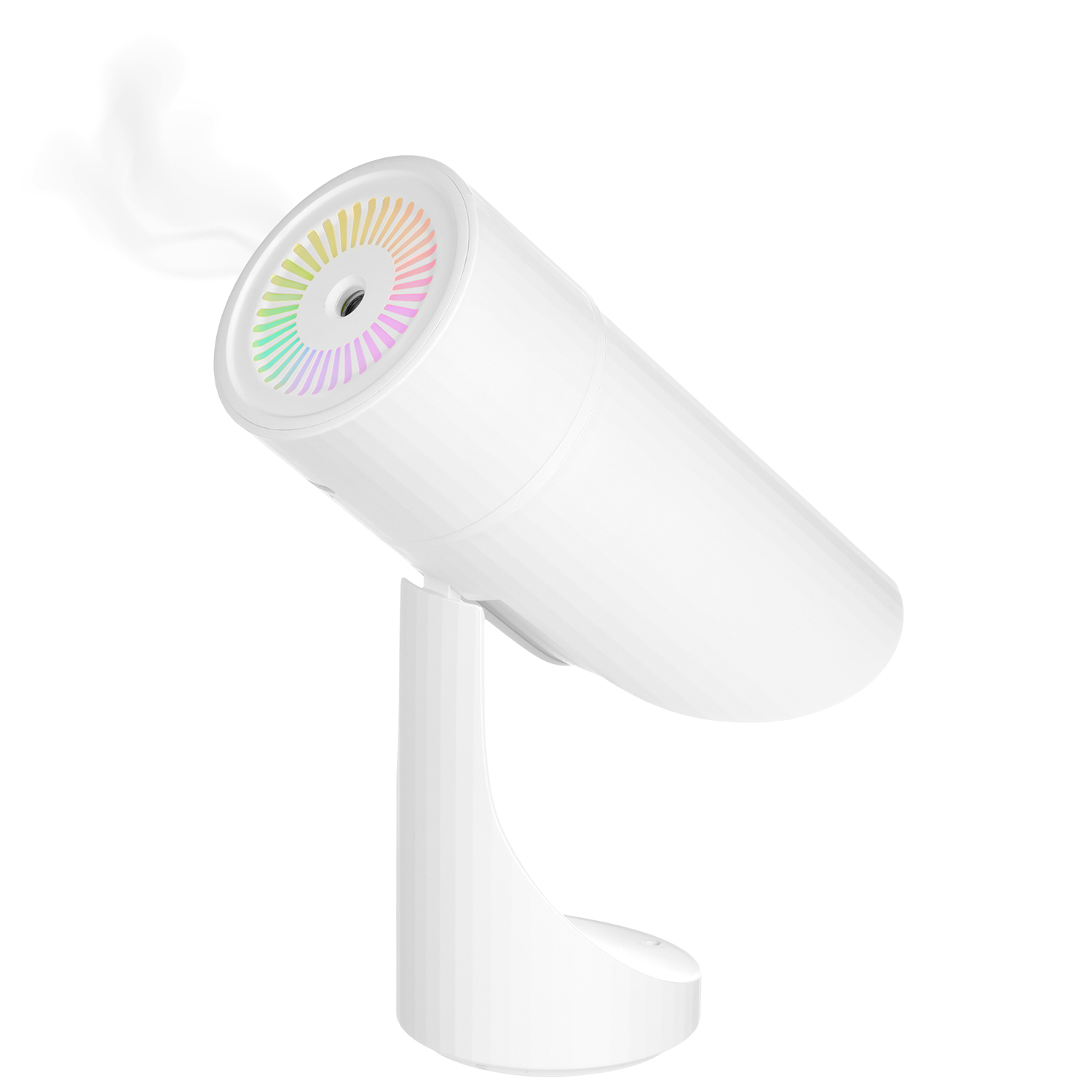 Портативный увлажнитель воздуха со встроенным аккумулятором 1000 mAh и функцией радужной LED-подсветки. Технология нано-распыления эффективно снижает сухость воздуха и электронное излучение, что устраняет статическое электричество. Конструкция с наклоном позволяет сделать поток воздуха направленным. Специальное покрытие корпуса OIL PAINT улучшает визуальные и тактильные характеристики изделий. Подходит для использования в автомобиле. Объем резервуара для воды - 260 мл.