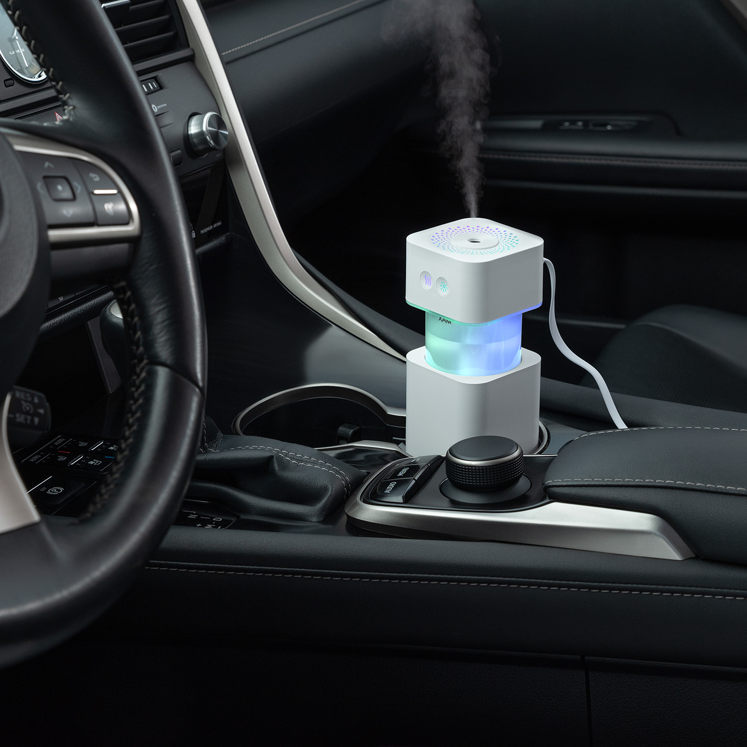 Мини-увлажнитель воздуха с функцией радужной LED-подсветки. Технология нано-распыления эффективно снижает сухость воздуха и электронное излучение, что устраняет статическое электричество. Специальное покрытие корпуса OIL PAINT обеспечивает лучшие визуальные и тактильные характеристики пластика, а раздвижной корпус с подсветкой подчеркивает стильный дизайн. Увлажнитель имеет USB-выход -и может служить переходником для зарядки от сети других устройств. Подходит для использования в автомобиле. Объем резервуара воды – 200 мл.