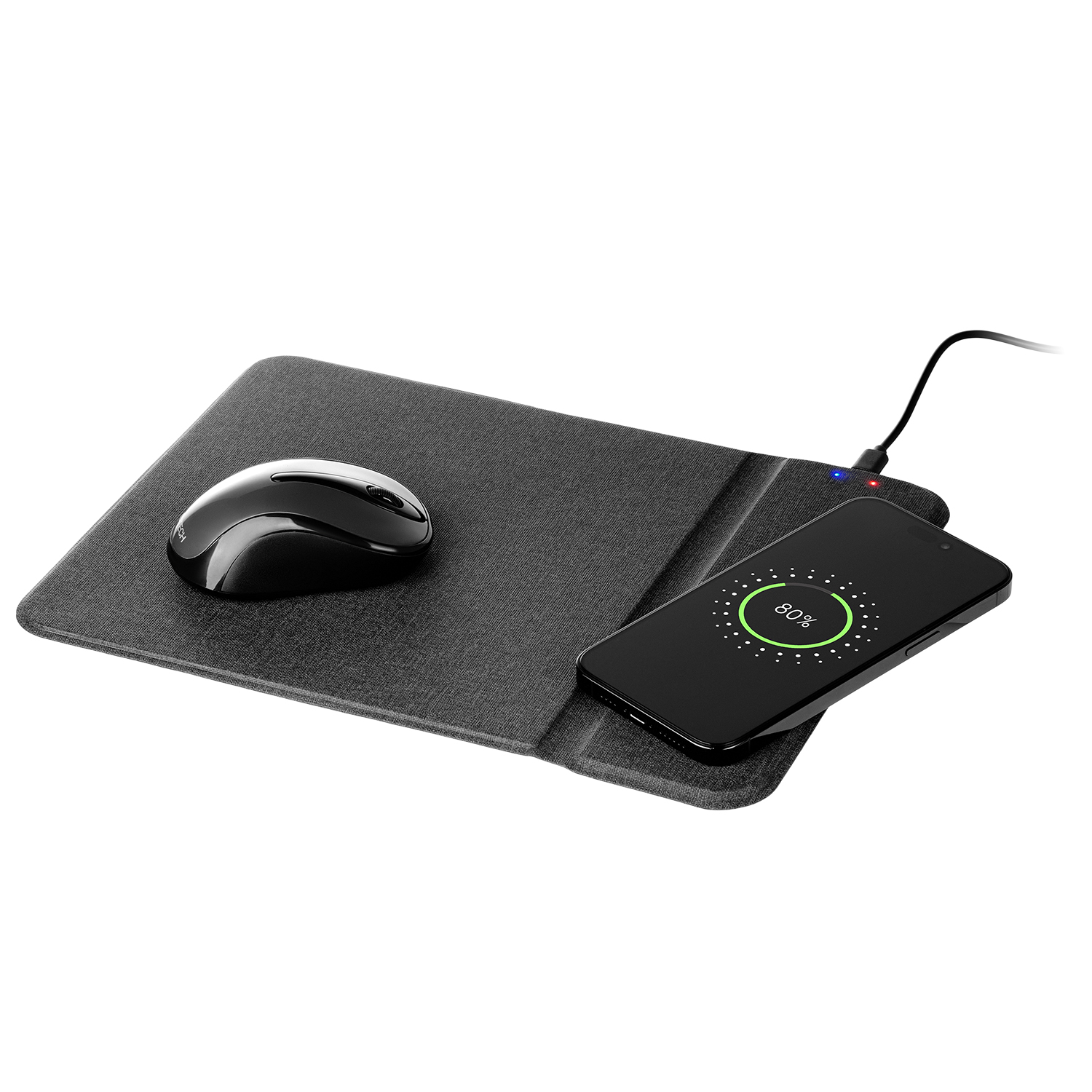 Коврик для мыши с беспроводным зарядным устройством – это функциональный аксессуар, который позволяет экономить место на рабочем столе и работать сразу с несколькими устройствами. Спокойный цвет и минималистичный дизайн делают аксессуар универсальным. Коврик легко превращается в подставку для телефона, для зарядки и удобного просмотра фильмов.