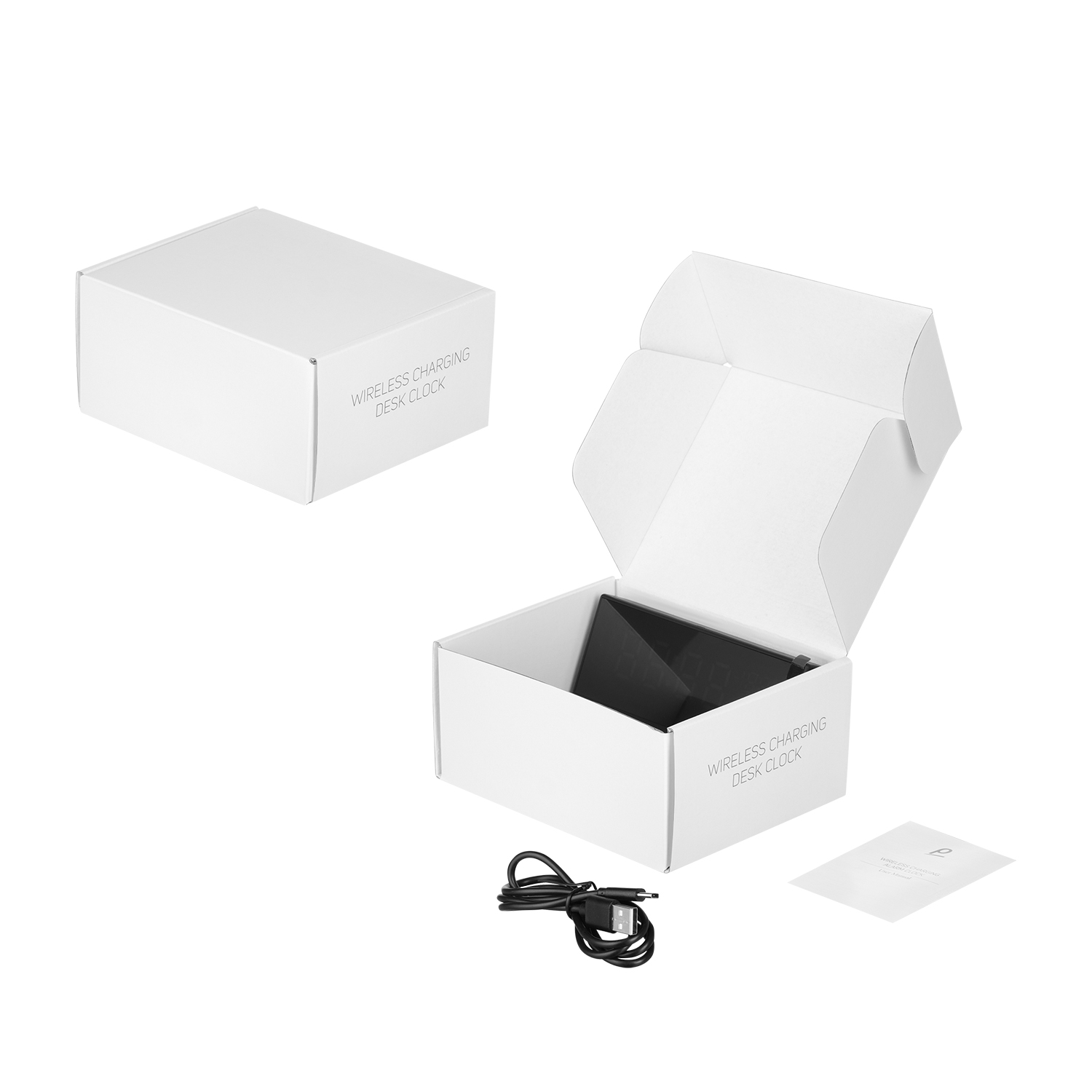 Зарядная станция 15W с часами и будильником. Функция будильника (с возможностью настройки двух будильников и повтора), 12- или 24- формат времени. Четыре уровня яркости дисплея (максимальный, средний, минимум, выключен). Индикаторы зарядки, будильника, даты, температуры. Наличие USB-выхода для обеспечения проводной зарядки устройств. Функция энергосбережения - после отключения питания внутренняя батарейка-«таблетка» сохраняет настройки часов, и после повторного подключения к питанию часы не нужно переустанавливать.
