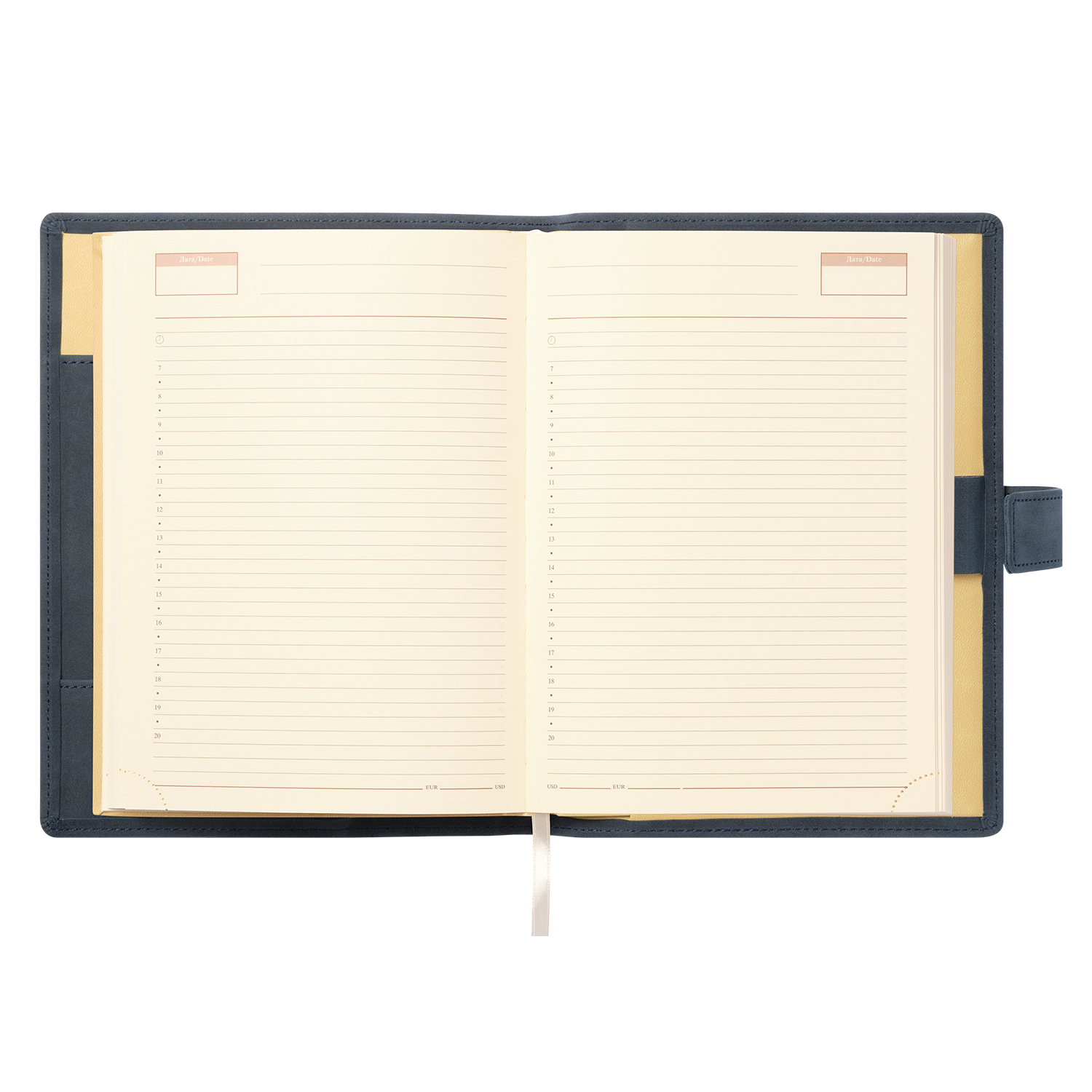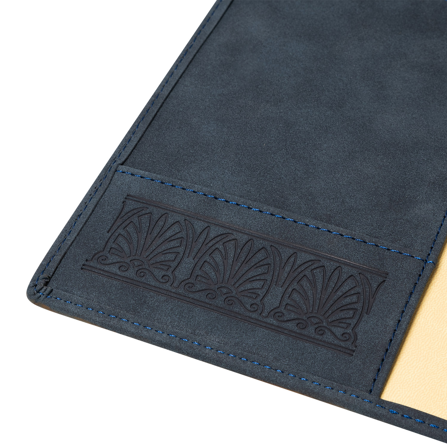 Royal NEO — это гармоничное сочетание элегантности и функциональности. Съемная обложка из высококачественной искусственной кожи Nuba с приятной замшевой текстурой и изысканной прошивкой по периметру в тон придает ежедневнику утонченный вид. Удобный хлястик на кнопке с практичной петелькой для ручки, выполненной из того же материала, что и обложка, обеспечивает надежную фиксацию и дополняет стильный дизайн.