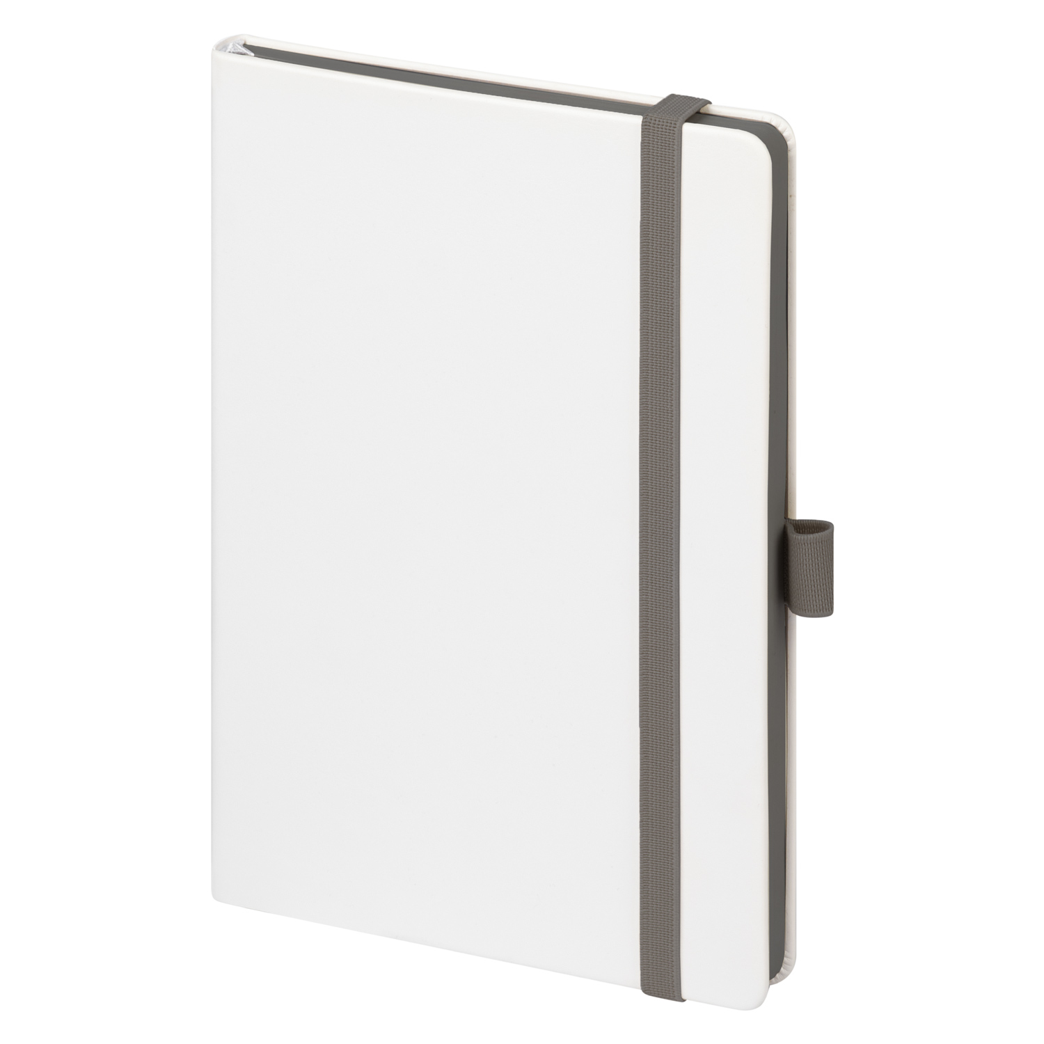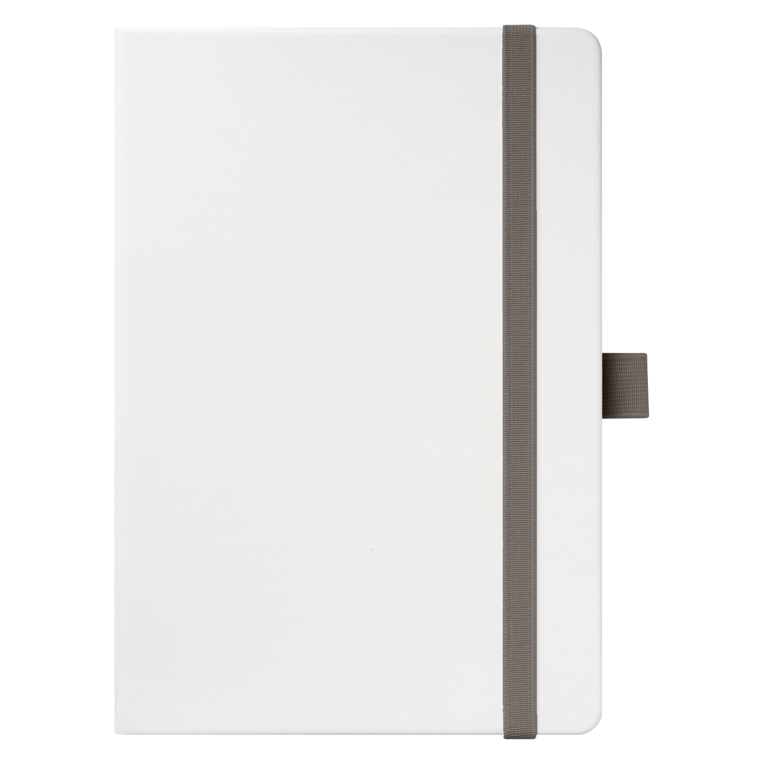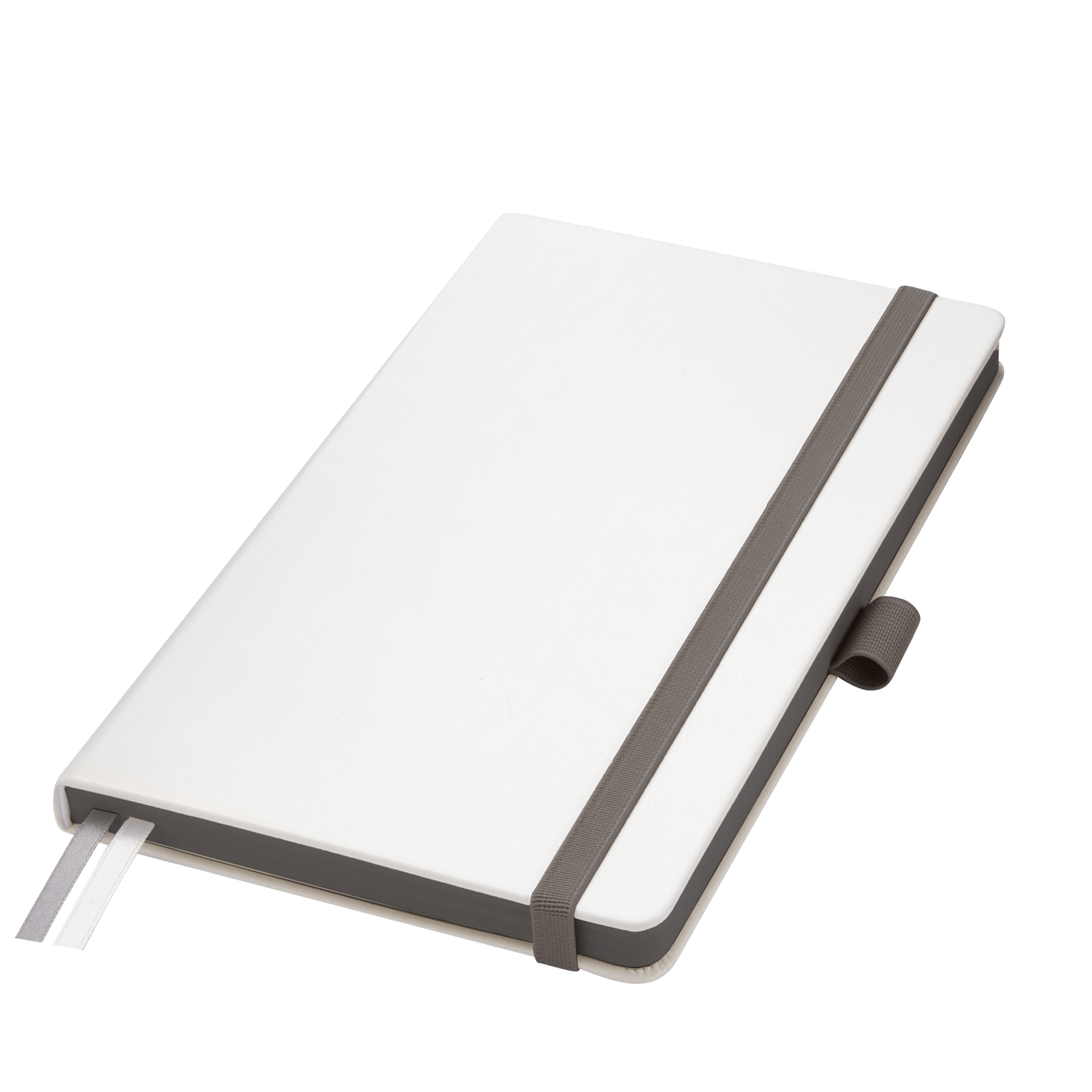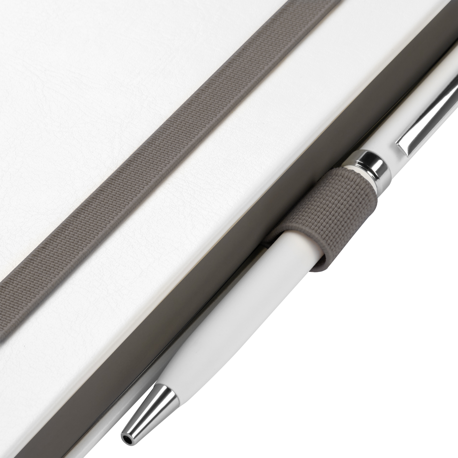 Недатированный ежедневник выполнен в жесткой обложке из искусственной кожи со скругленными уголками. Переплетный материал гладкий, с легкой естественной паутинкой морщин, имеет полуглянцевый блеск. Цвет – чистый белый. Темно-серые матовые форзац и нахзац, а также темно-серый срез блока создают оригинальный динамичный цветовой ансамбль и подчеркивают белизну обложки. Страницы светло-кремового цвета, из гладкого офсета, слегка шелковистые, со скругленными уголками. Добавляют изделию мягкую комфортную теплоту. Двойное атласное ляссе составлено из серой и белой лент. Каждая шириной 6 мм, имеет легкий блеск. Вертикальная фиксирующая резинка прочная, надежная и удобная, в тон срезу. Есть петелька для ручки в тон резинки. Карман на заднем форзаце.