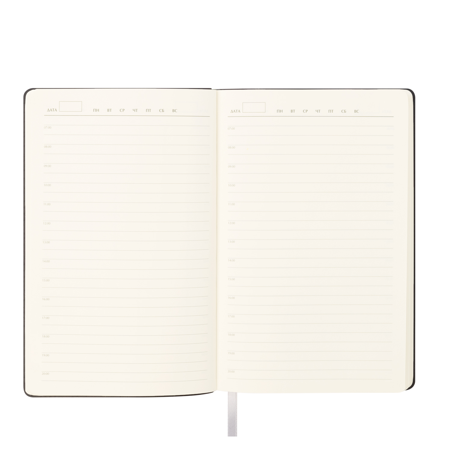 Недатированный ежедневник в гибкой обложке из качественной искусственной кожи со скругленными уголками. Покрытие матовое гладкое, слегка припудренное. Очень приятное на ощупь. Форзац, нахзац и срез кремового цвета. Страницы со скругленными уголками из гладкого шелковистого офсета, кремовые. Одинарное атласное ляссе в цвет обложки. Без пластиковой коробки, без стикеров, без логотипа Portobello на задней обложке.