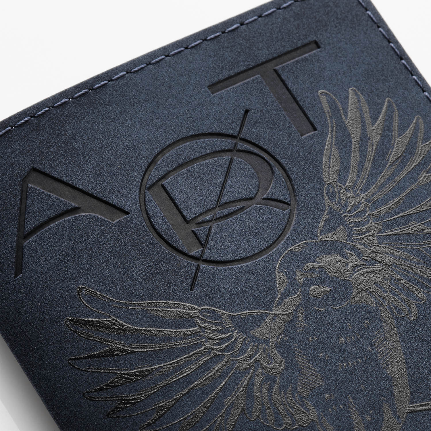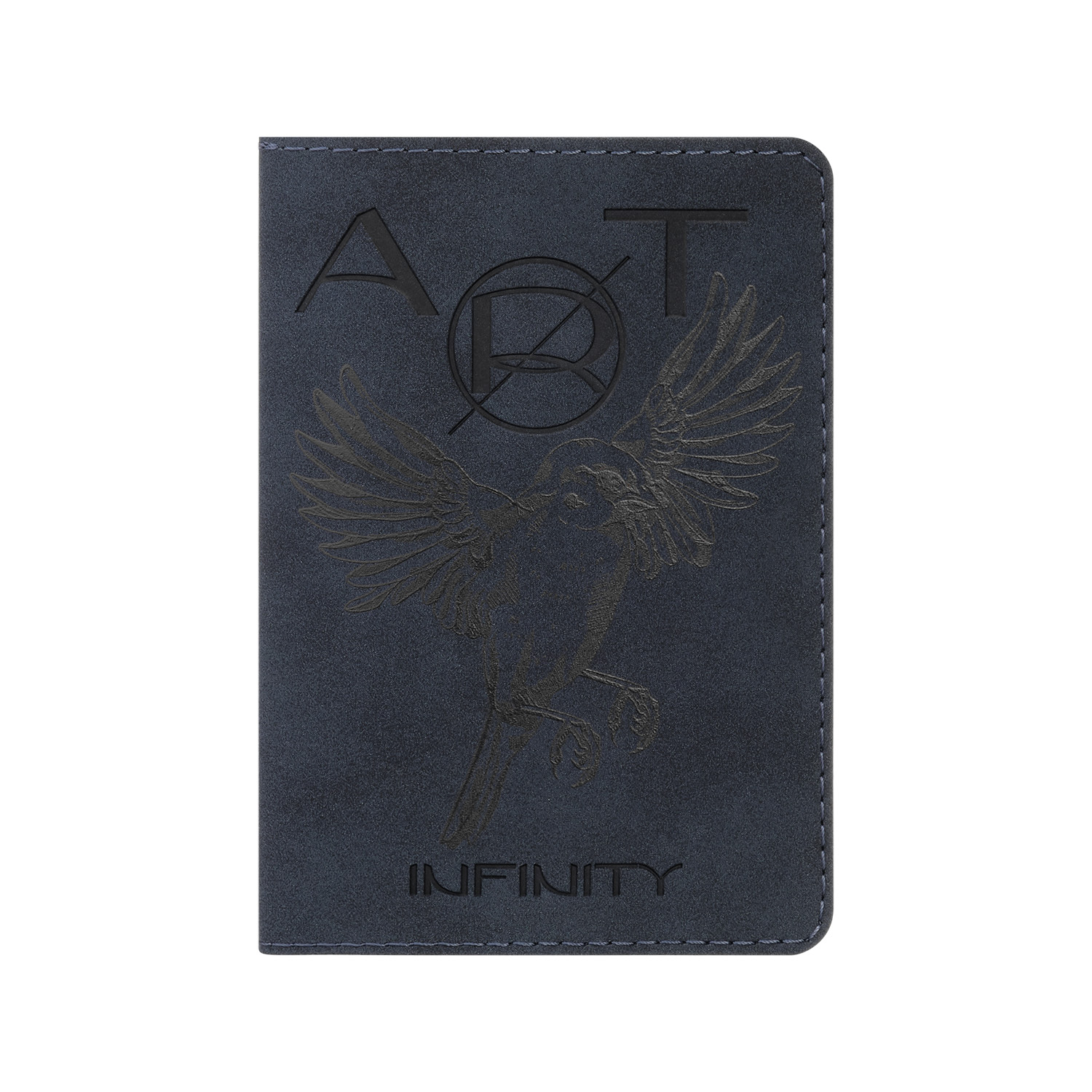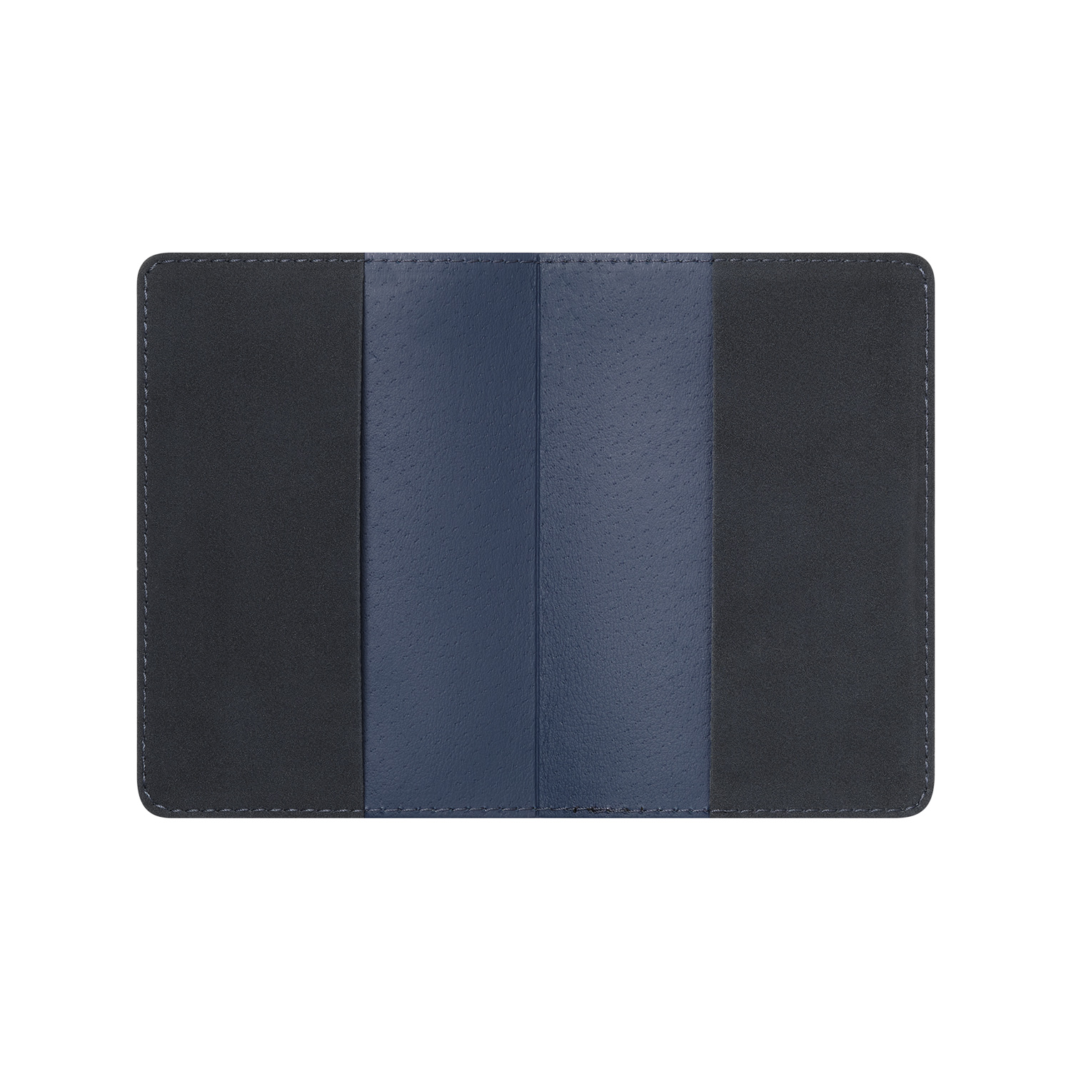 Обложка выполнена из сшивки двух материалов синего цвета.