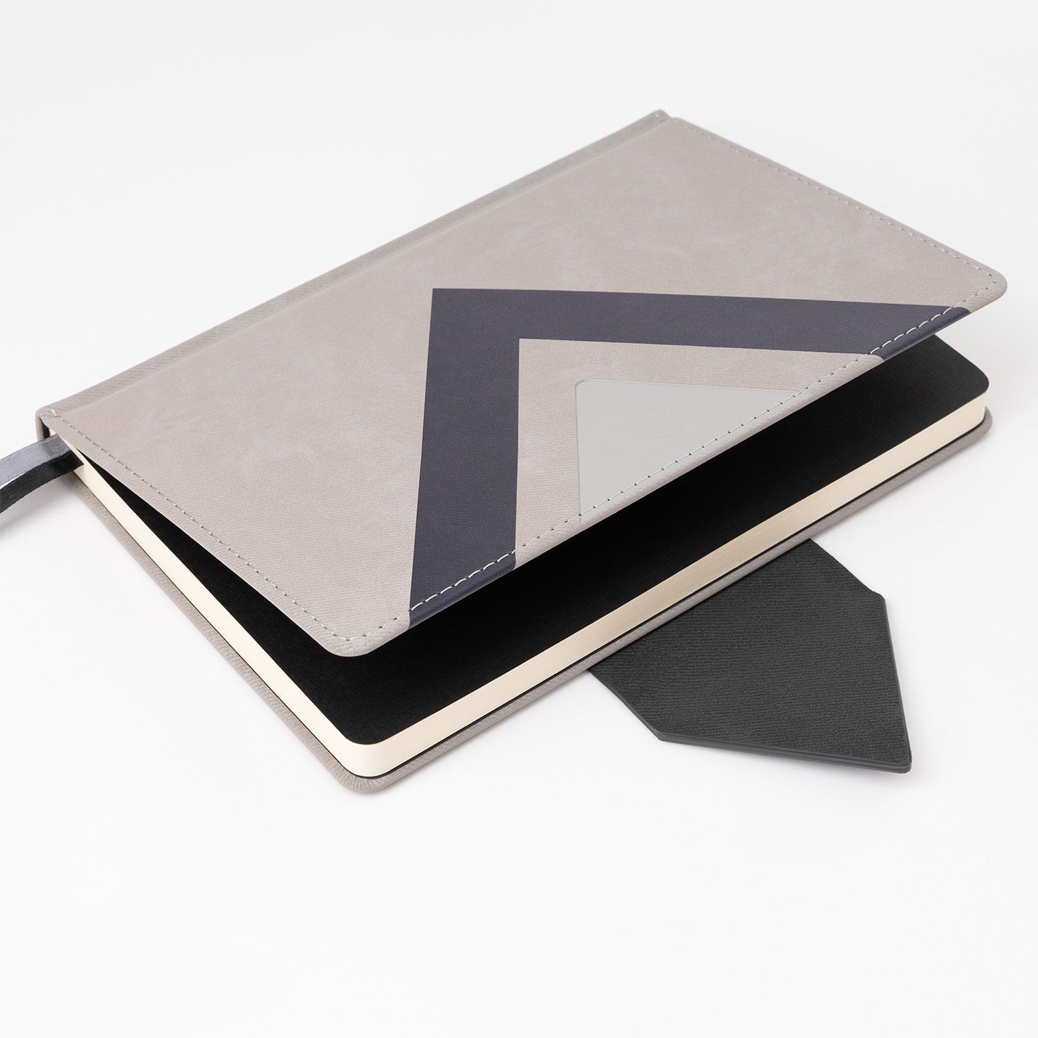 Черные форзац и нахзац создают гармоничное сочетание с пришивным магнитым хлястиком. Удобное атласное ляссе поможет вам быстро найти нужную страницу. Этот ежедневник — не просто инструмент для планирования, а изысканный аксессуар, который подчеркнет ваш безупречный вкус.
