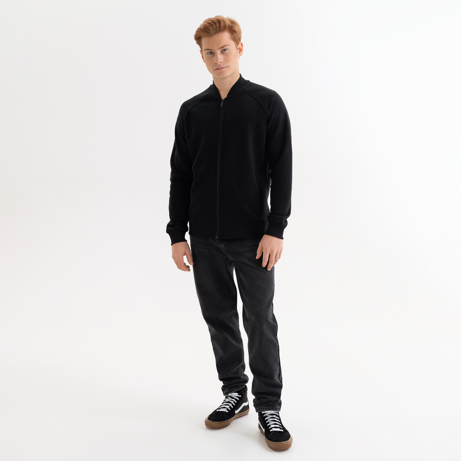 Рукав реглан даёт свободу в плечах, а воротник стойка выглядит естественно и аккуратно. Боковые карманы, манжеты и нижняя резинка делают модель удобной в движении и практичной в повседневной носке.