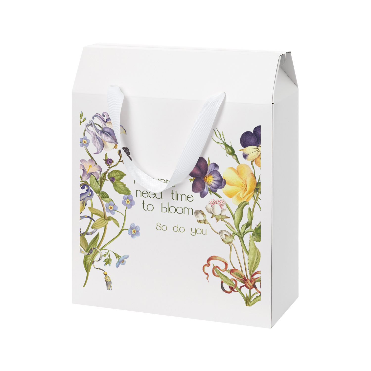 Универсальная подарочная коробка-пакет в большом размере — это идеальное решение для тех, кто ценит как эстетичный внешний вид, так и функциональность. Созданные из микрогофрокартона и кашированного мелованной бумагой, эти коробки отличаются изысканным дизайном и прочностью, что делает их идеальным выбором для упаковки подарков.