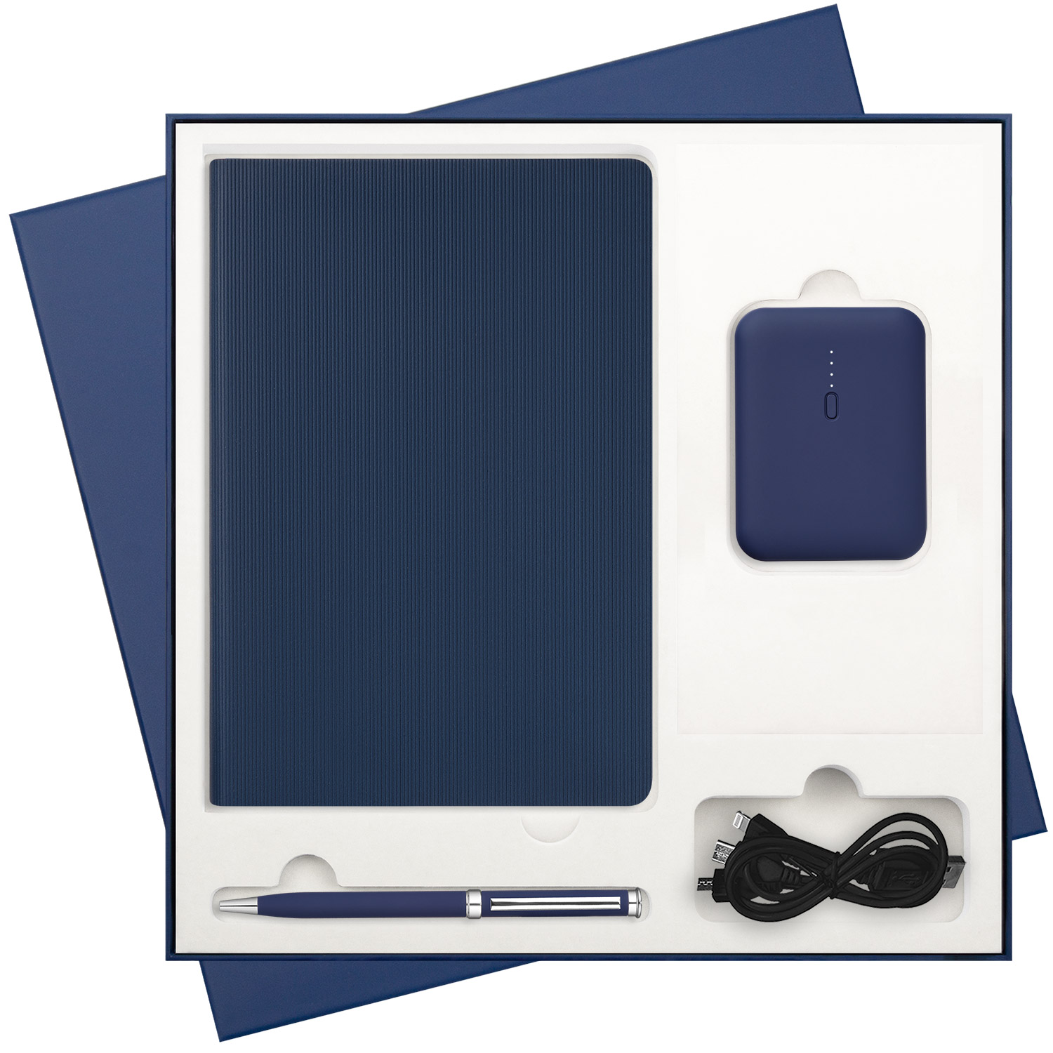 Подарочная упаковка с EVA ложементом обеспечивает расширенный выбор аксессуаров: конструкторская особенность ложемента позволяет использовать его под все виды зарядных устройств. Универсальные вырубные ячейки в точности повторяют форму аксессуаров, фиксируя их положение в коробке и обеспечивая сохранность набора. А флокированный материал ложемента, фактура которого напоминает бархат, удачно сочетается со всеми комплектующими.