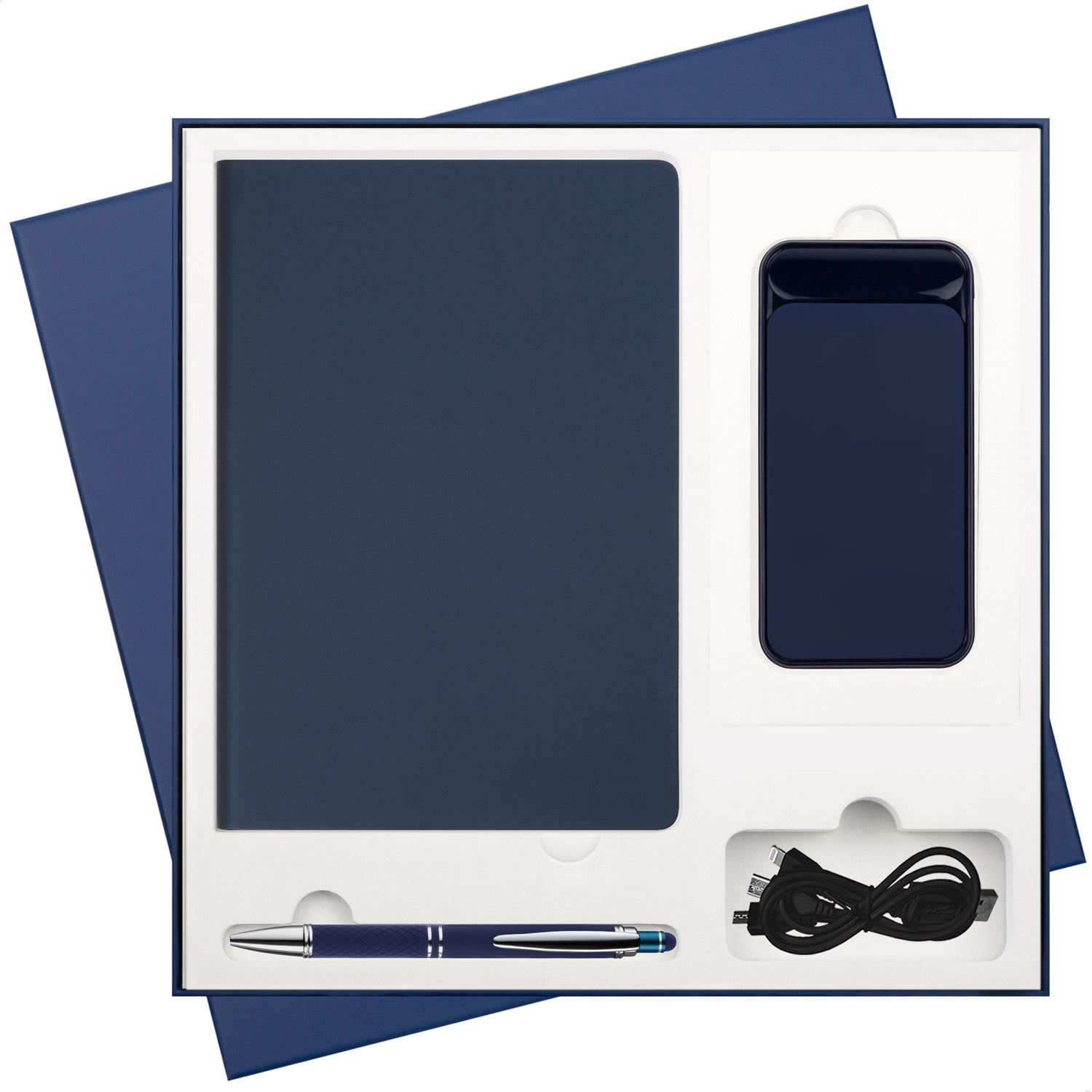 В комплекте: стильный ежедневник для планирования и любых записей, ручка для комфортного письма и внешний аккумулятор, который позволит оставаться на связи в любой ситуации.