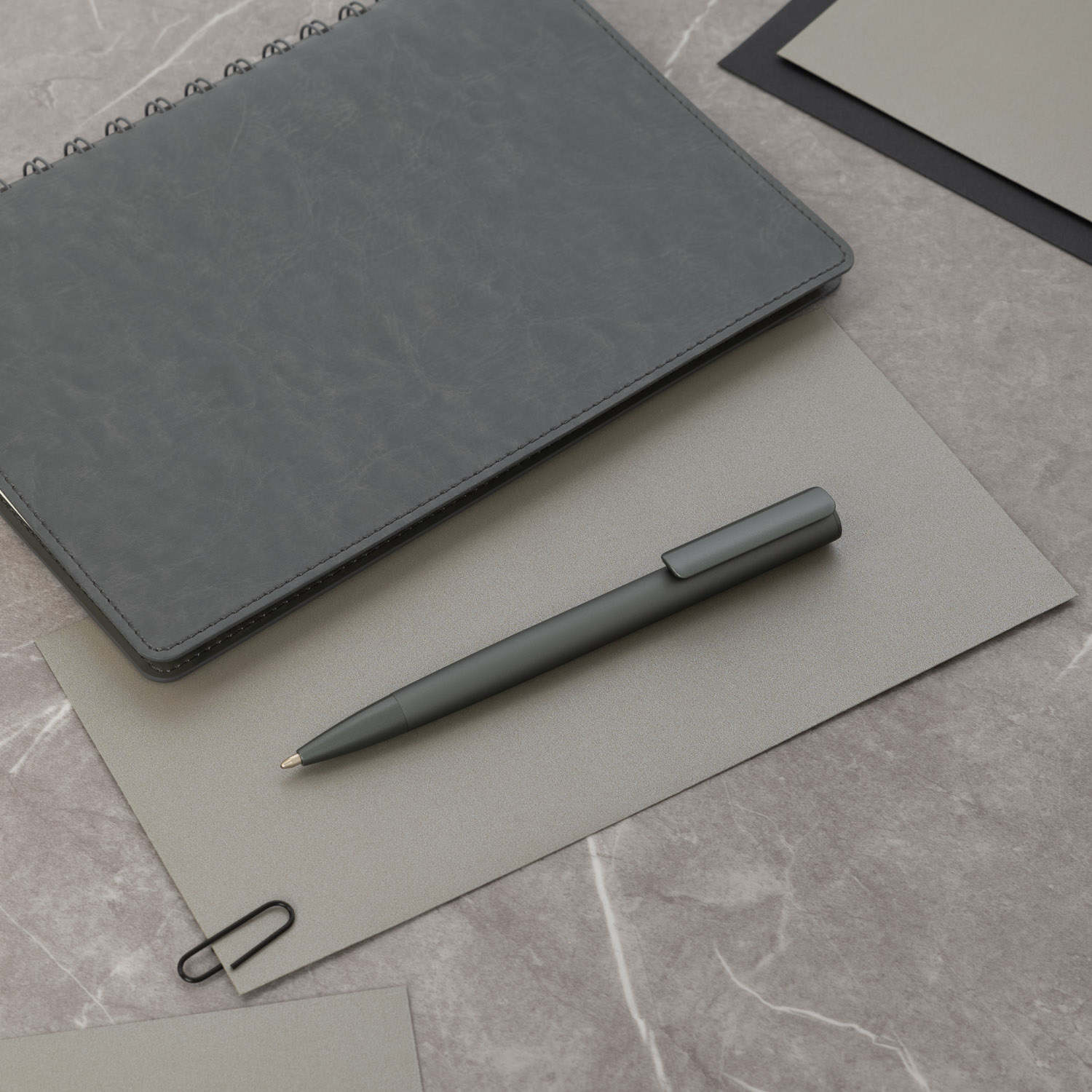 Минималистичный дизайн корпуса эффектно дополнен покрытием Soft Touch metallic, которое удачно гармонирует с металлик деталями. Стержень легко выдвигается благодаря нажимному механизму клипа-слайдера, ручка не скользит в руке и комфортно ощущается при письме за счет покрытия. Плавно пишущие синие чернила Documental (Германия) обеспечивают качественное и мягкое письмо.