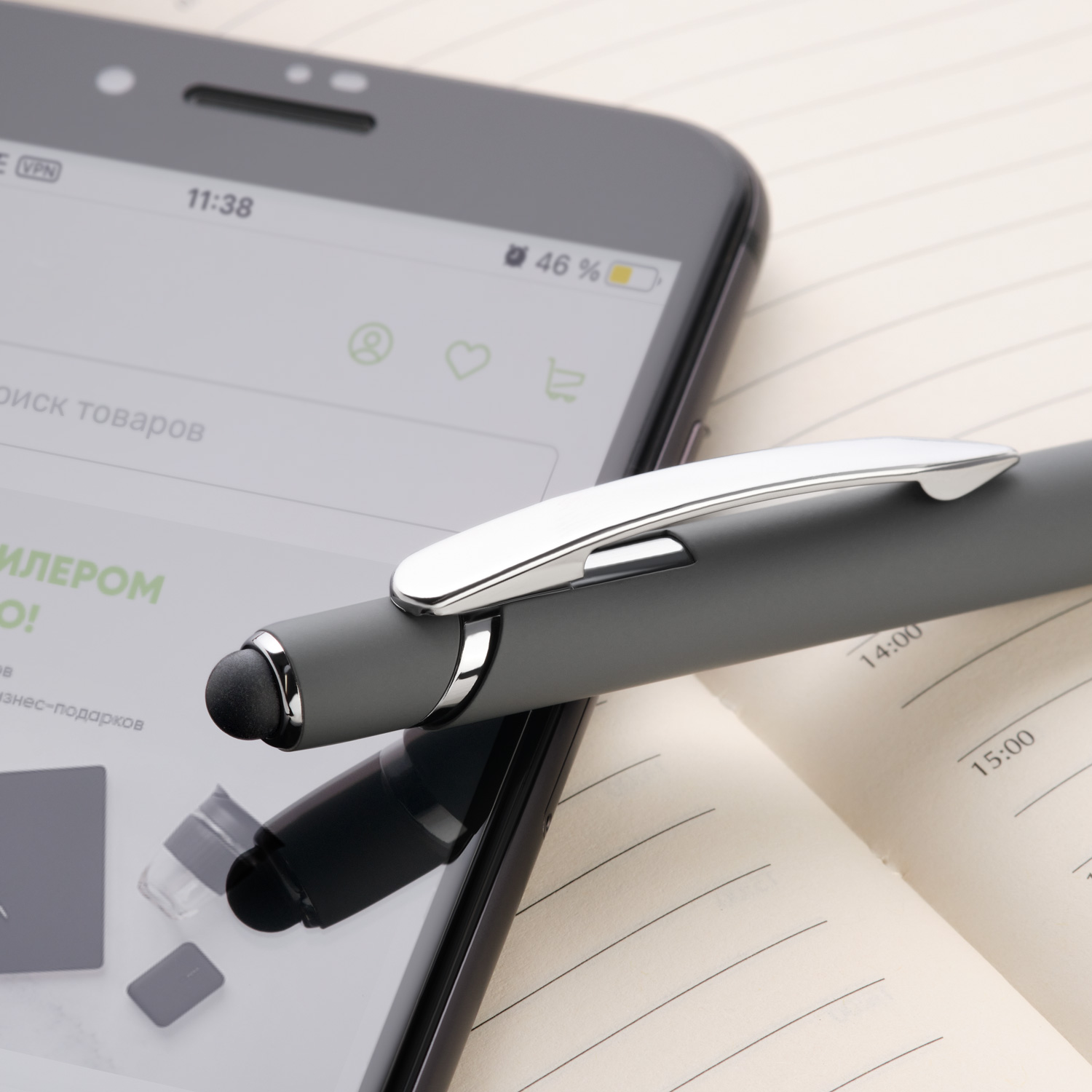 • Отделка: хромированные детали, функциональный, надежный клип, оснащен стилусом для работы с сенсорными экранами