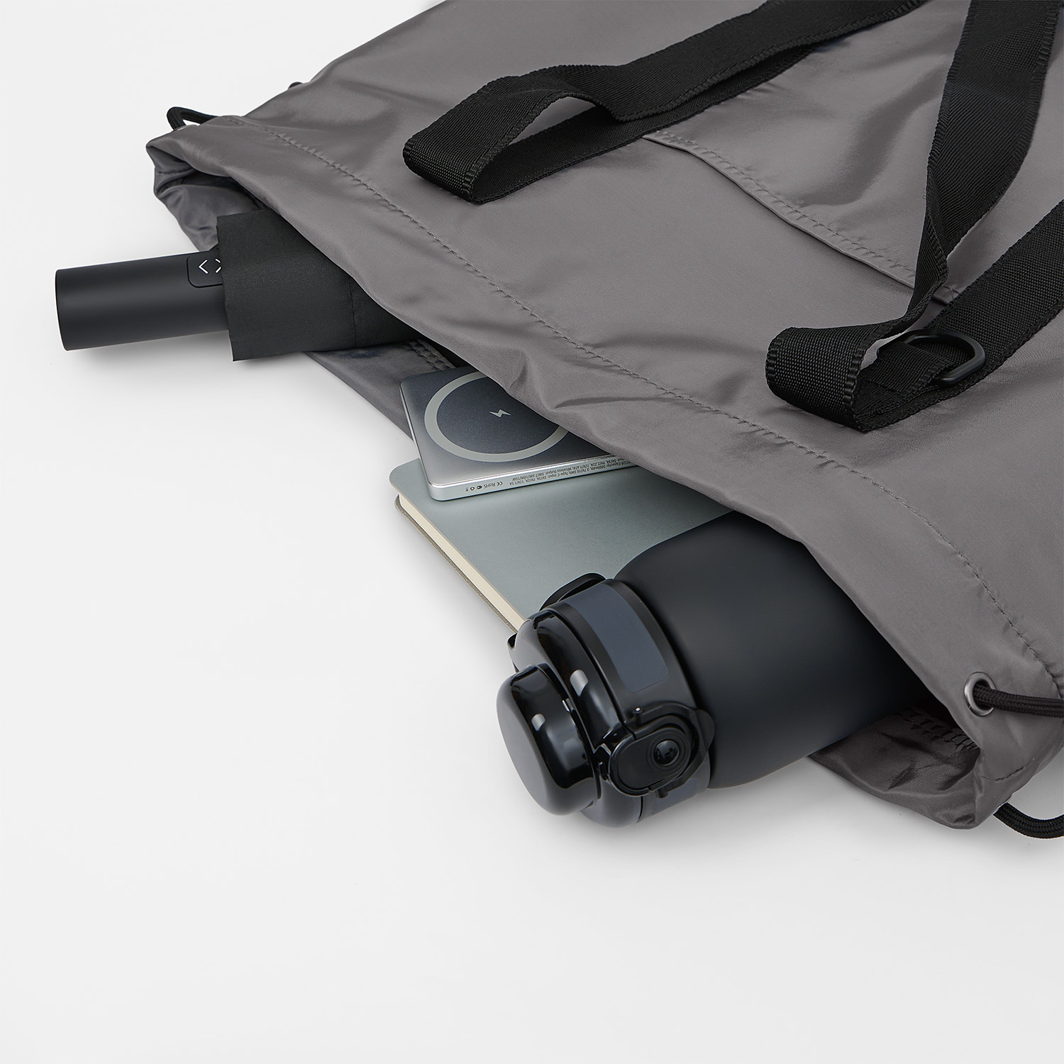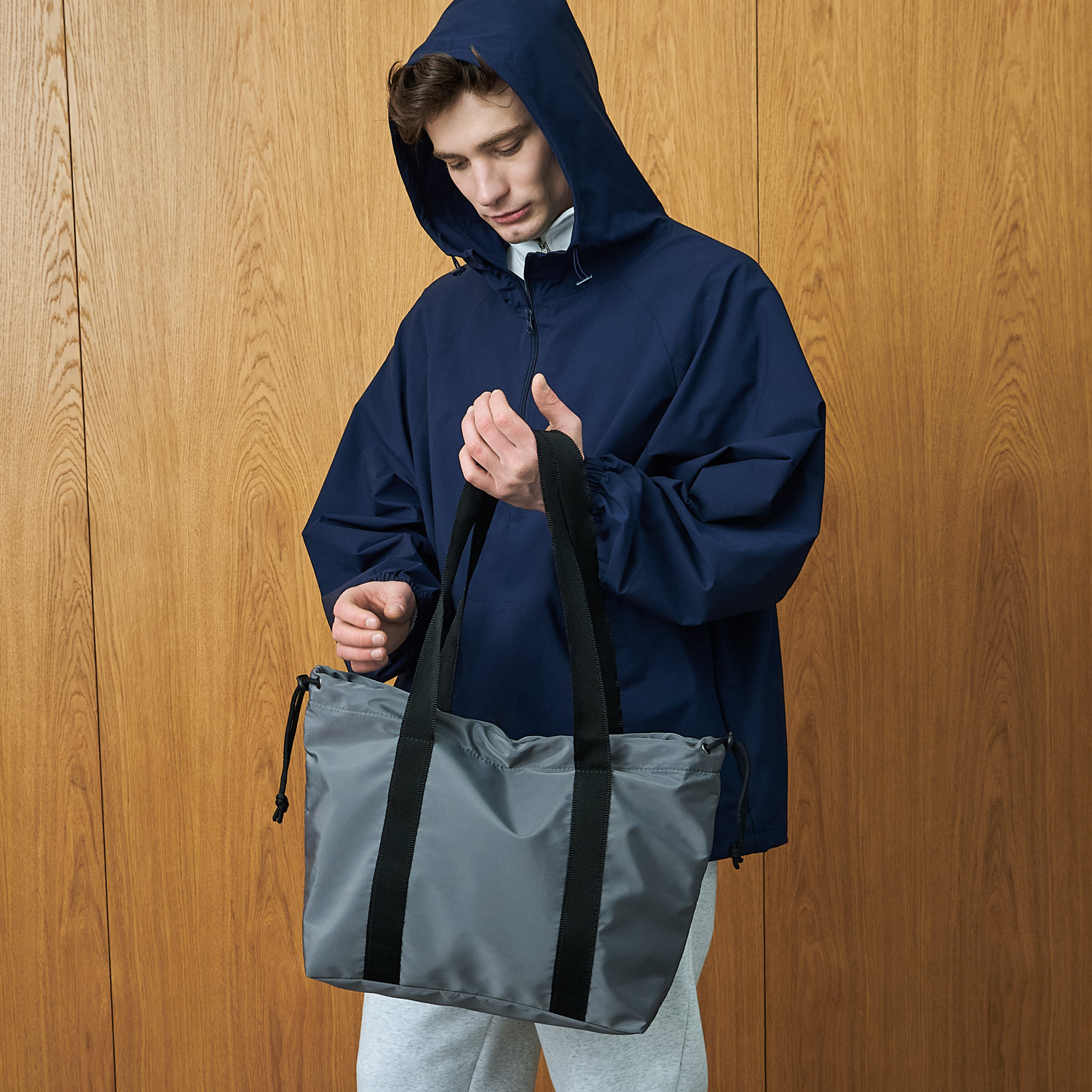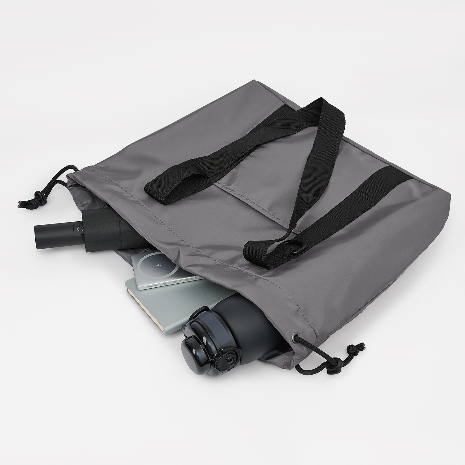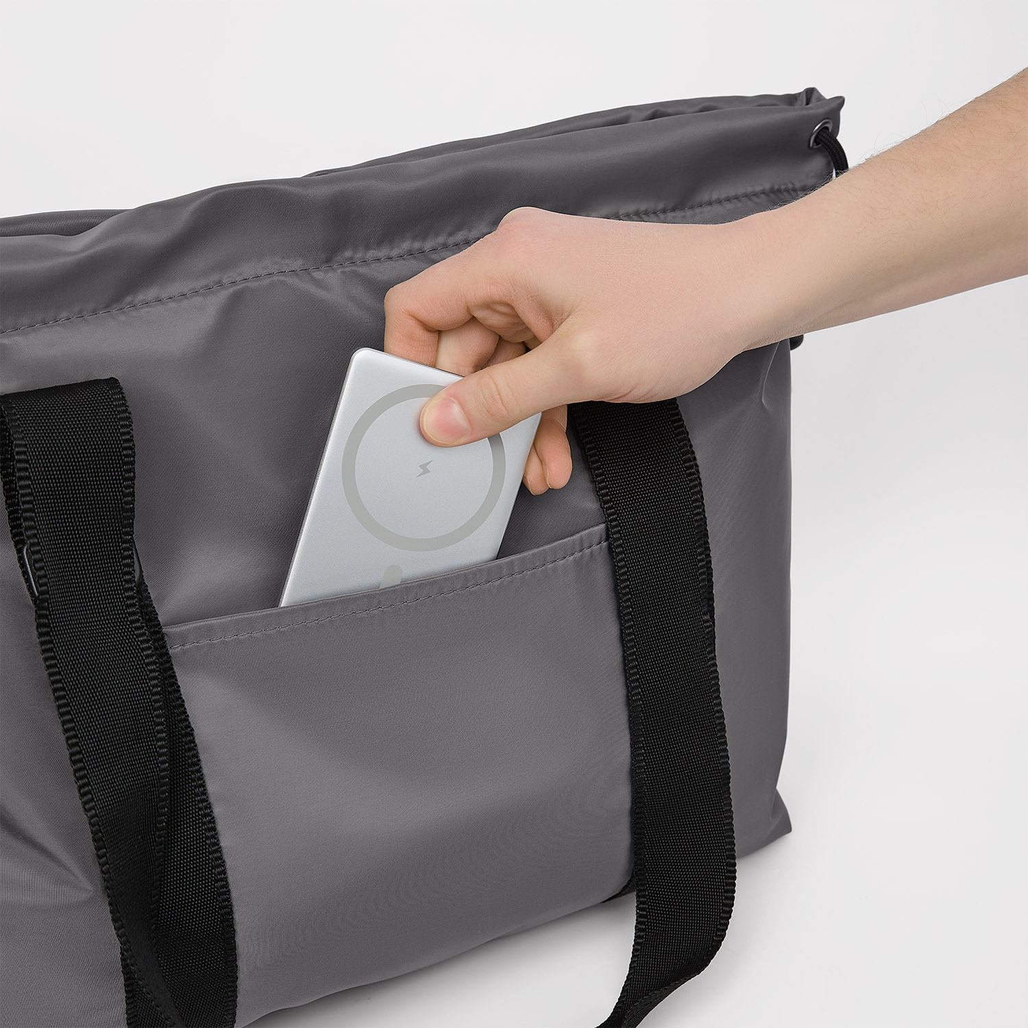 Есть внешний карман для мелочей, а также шнурок для регулирования ширины шоппера.