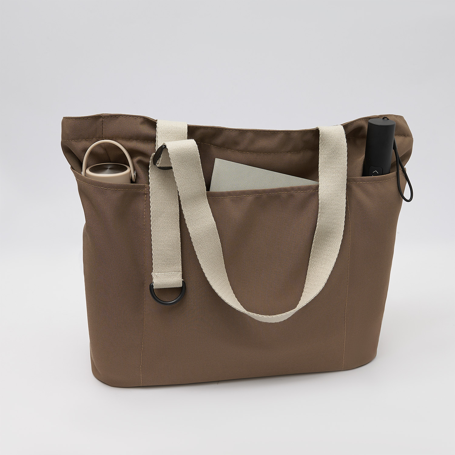 Внешние карманы добавляют полезное пространство, не делая сумку громоздкой. Уплотнённое дно не прогибается под весом вещей, подходит для переноски тяжёлых и объёмных предметов.