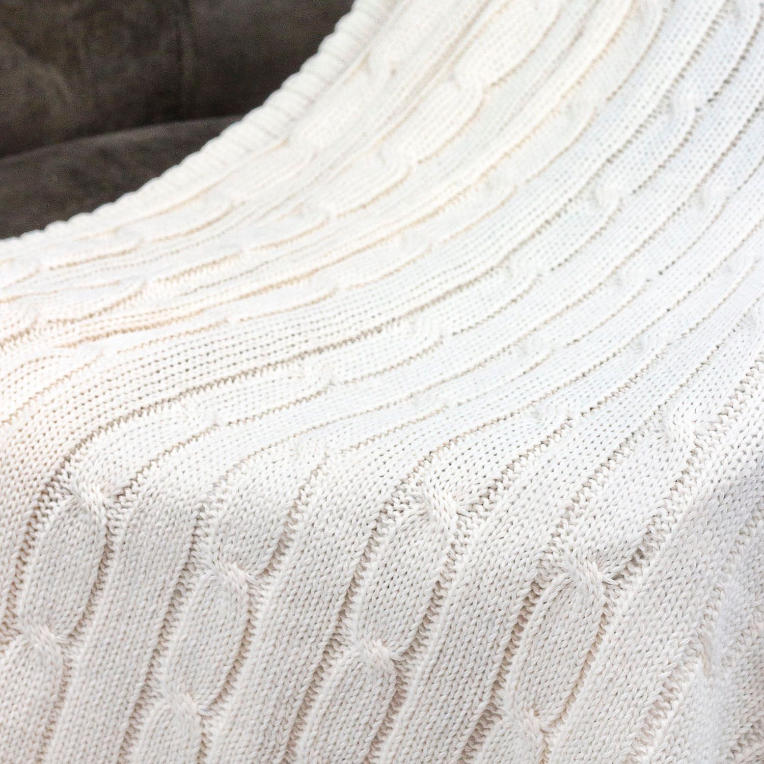 Плед Fado с фактурной вязкой «косы» станет вашим незаменимым спутником как дома, так и на природе. Берите его с собой в путешествия – лёгкий и компактный, он не займет много места в багаже.