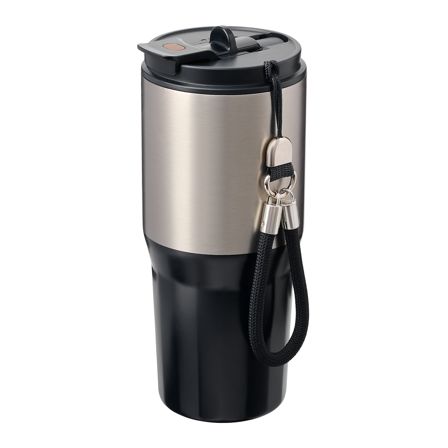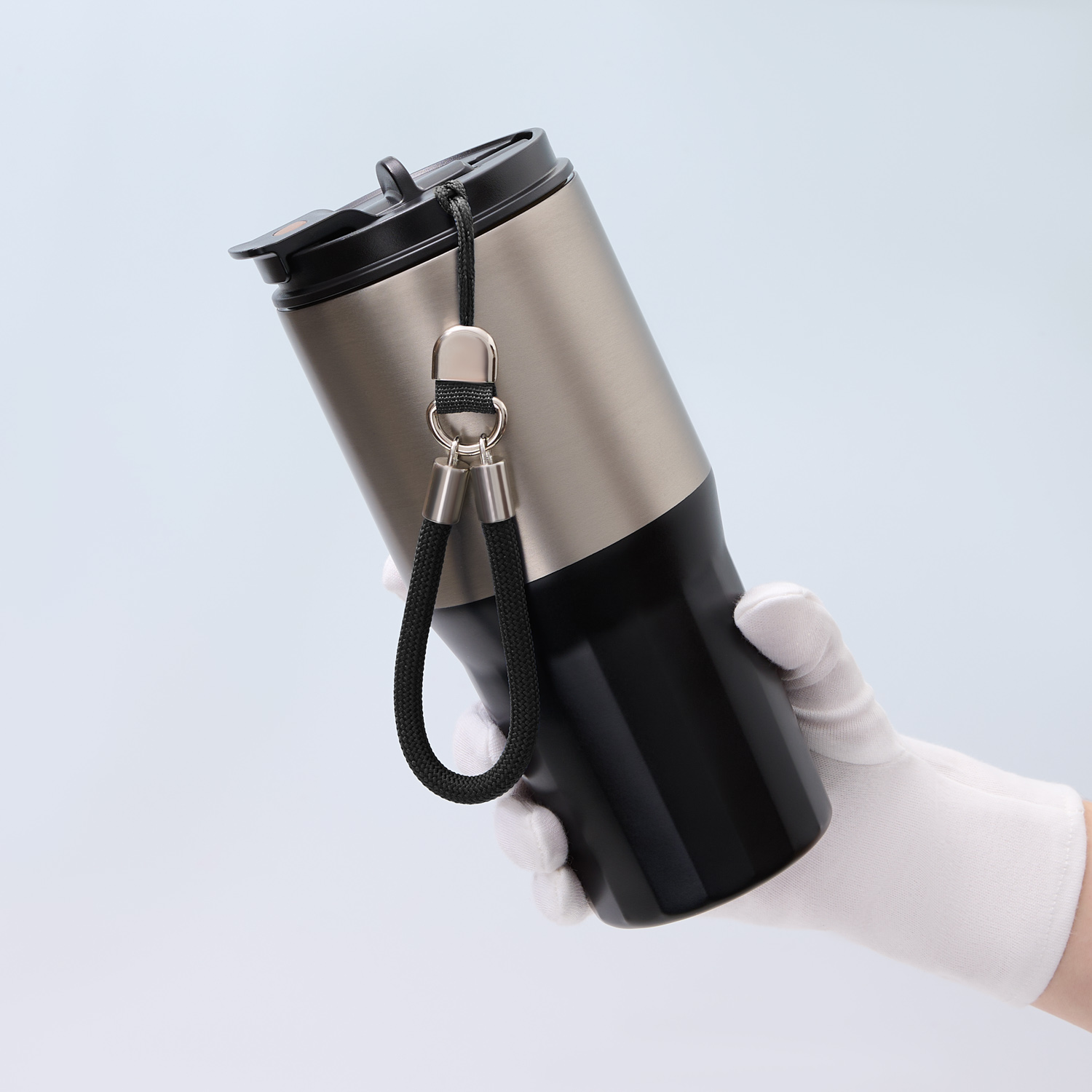 Внутренний слой из пищевой стали 304 марки, которая не впитывает запахи, не окисляется и сохраняет вкус напитка. Внешний корпус надежно защищен 201 сталью с комбинированным покрытием, где матовая текстура сочетается с гладким акцентом. В комплекте идет удобный, прочный и легко снимаемый ремешок, который превращает термокружку в идеальный аксессуар для активного образа жизни.