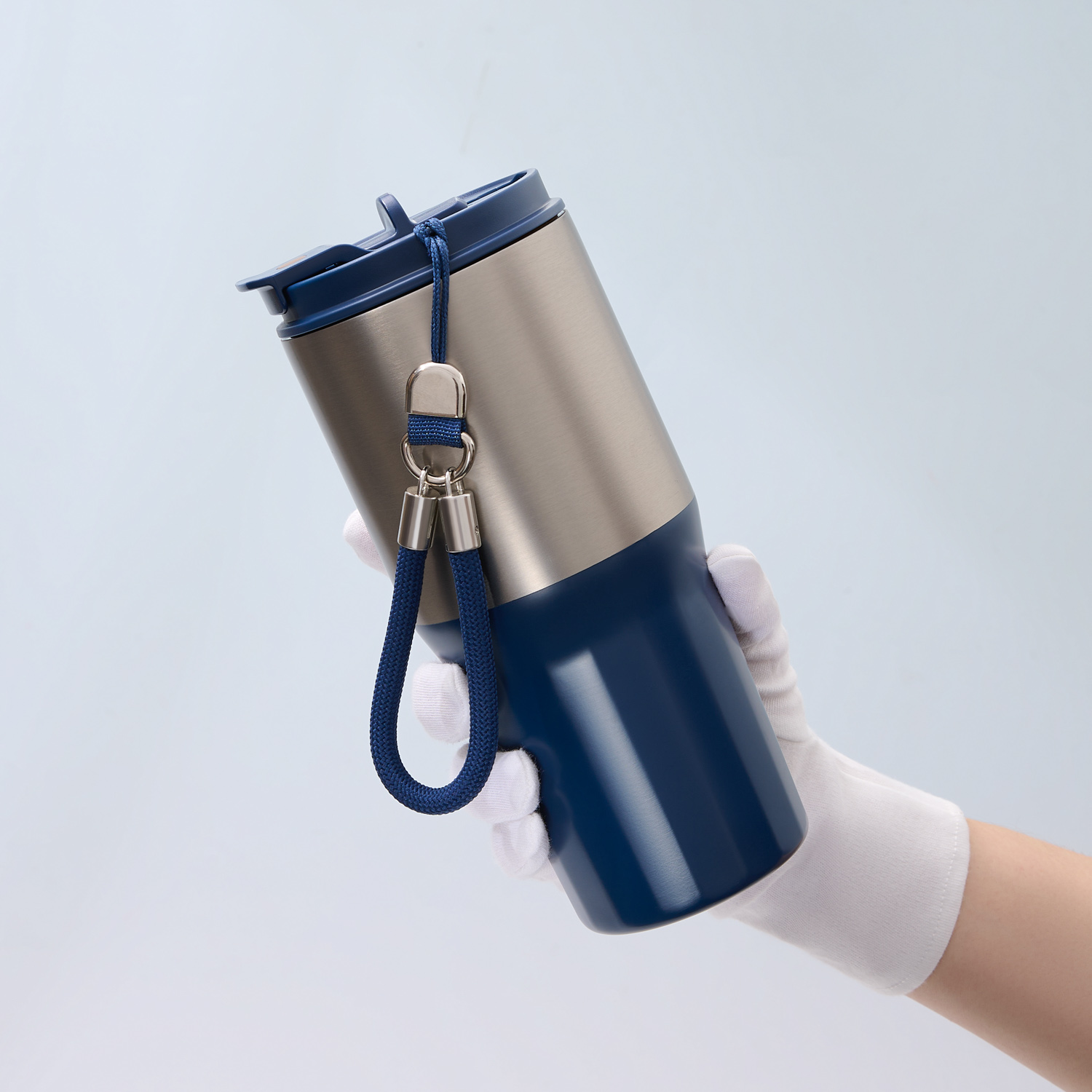 Внутренний слой из пищевой стали 304 марки, которая не впитывает запахи, не окисляется и сохраняет вкус напитка. Внешний корпус надежно защищен 201 сталью с комбинированным покрытием, где матовая текстура сочетается с гладким акцентом. В комплекте идет удобный, прочный и легко снимаемый ремешок, который превращает термокружку в идеальный аксессуар для активного образа жизни.