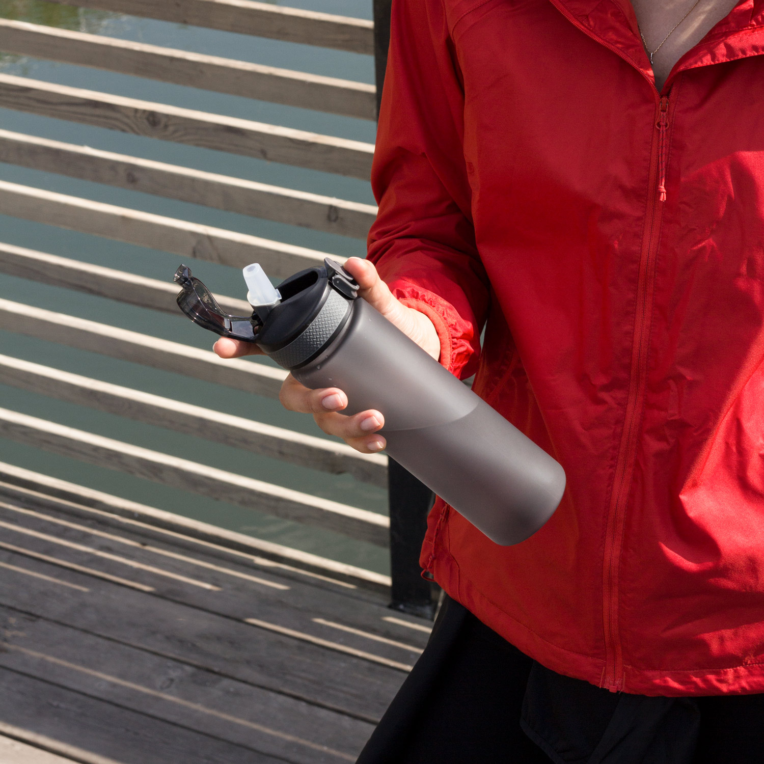 Конструкция крышки позволяет открыть бутылку, не касаясь питьевого горлышка, что гарантирует гигиеничность в использовании. Благодаря полупрозрачному корпусу вам всегда понятно, сколько жидкости осталось в бутылке.
