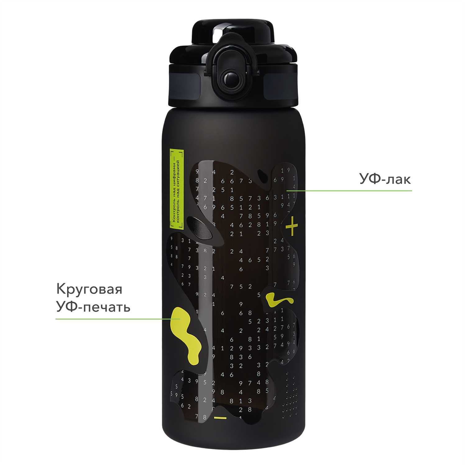 Объём 800 мл оптимален для повседневного использования. Эргономичная форма и покрытие Soft Touch обеспечивают приятные тактильные ощущения и надёжный захват. Клапан с фиксатором защищает от случайного открытия, а антискользящая вставка на крышке делает использование особенно удобным в движении. Поворотная пластиковая ручка облегчает переноску и позволяет зафиксировать бутылку на рюкзаке или сумке — практичное решение в активном ритме дня.