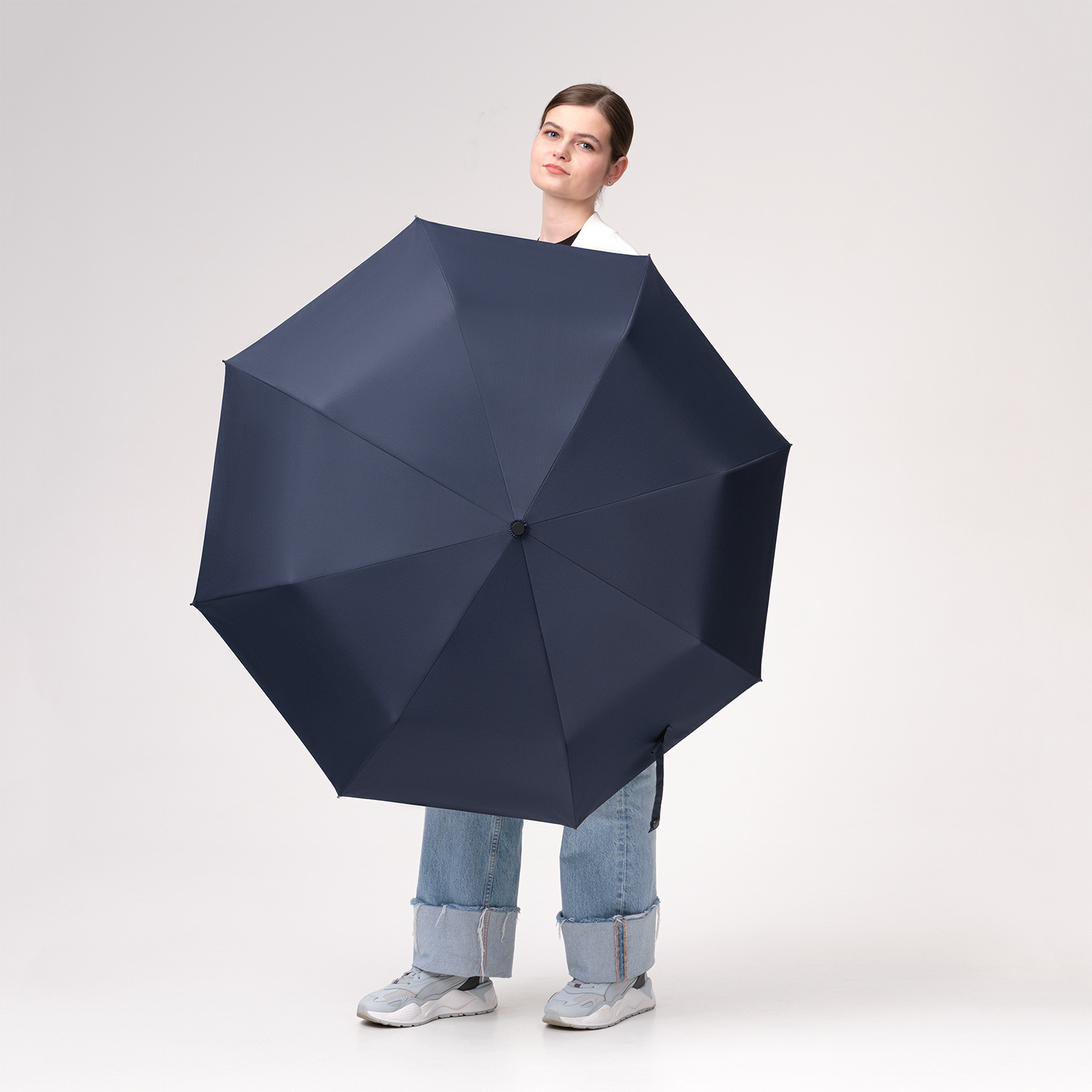 Надежный автоматический механизм в 3 сложения, 8 спиц из стеклопластика.