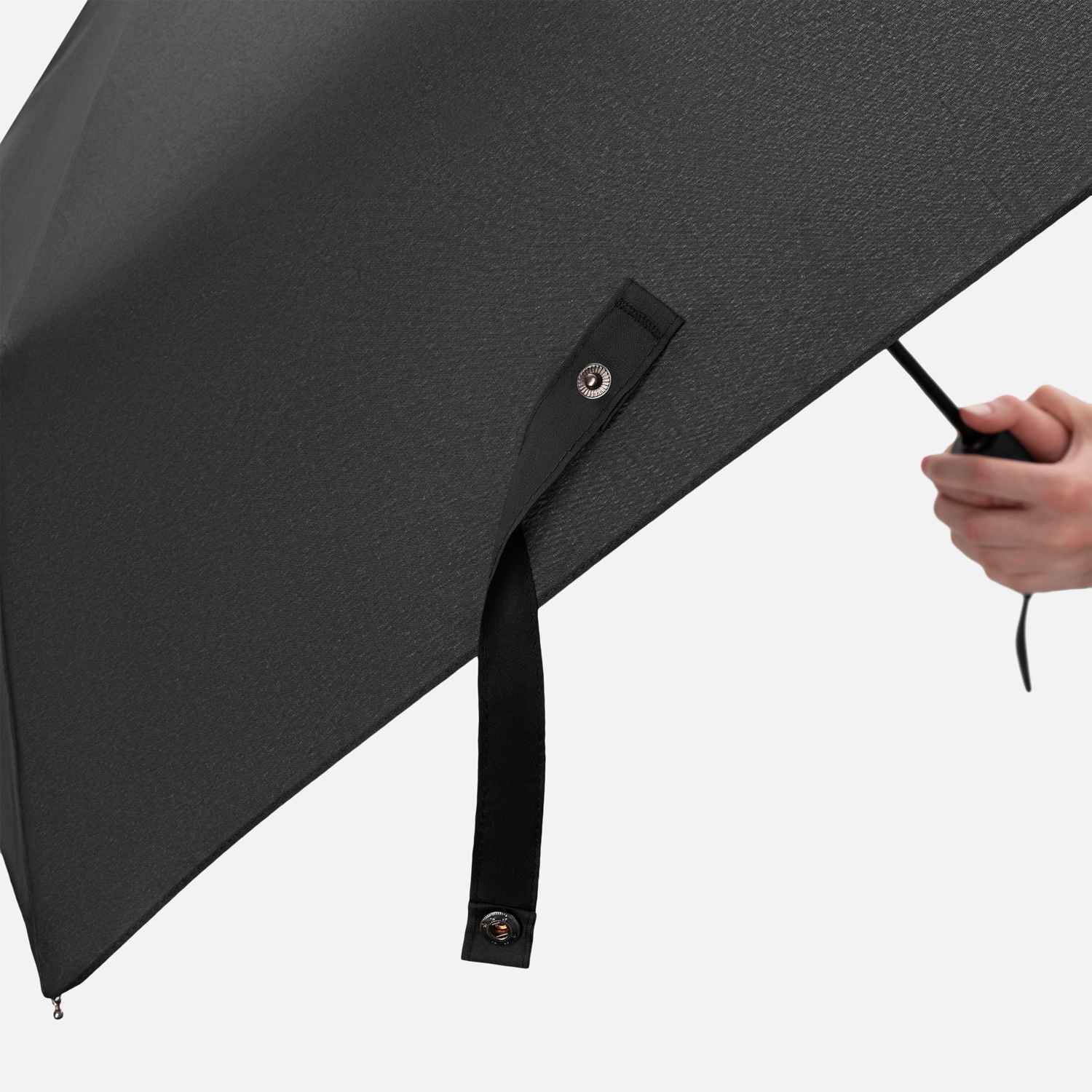 Функция Safety System предотвращает резкие движения при складывании, обеспечивая безопасное использование. Автоматический механизм позволяет легко и быстро открывать и закрывать купол нажатием кнопки. Система «Антишторм» защищает зонт от повреждений при сильных порывах ветра, позволяя куполу изгибаться без деформации.