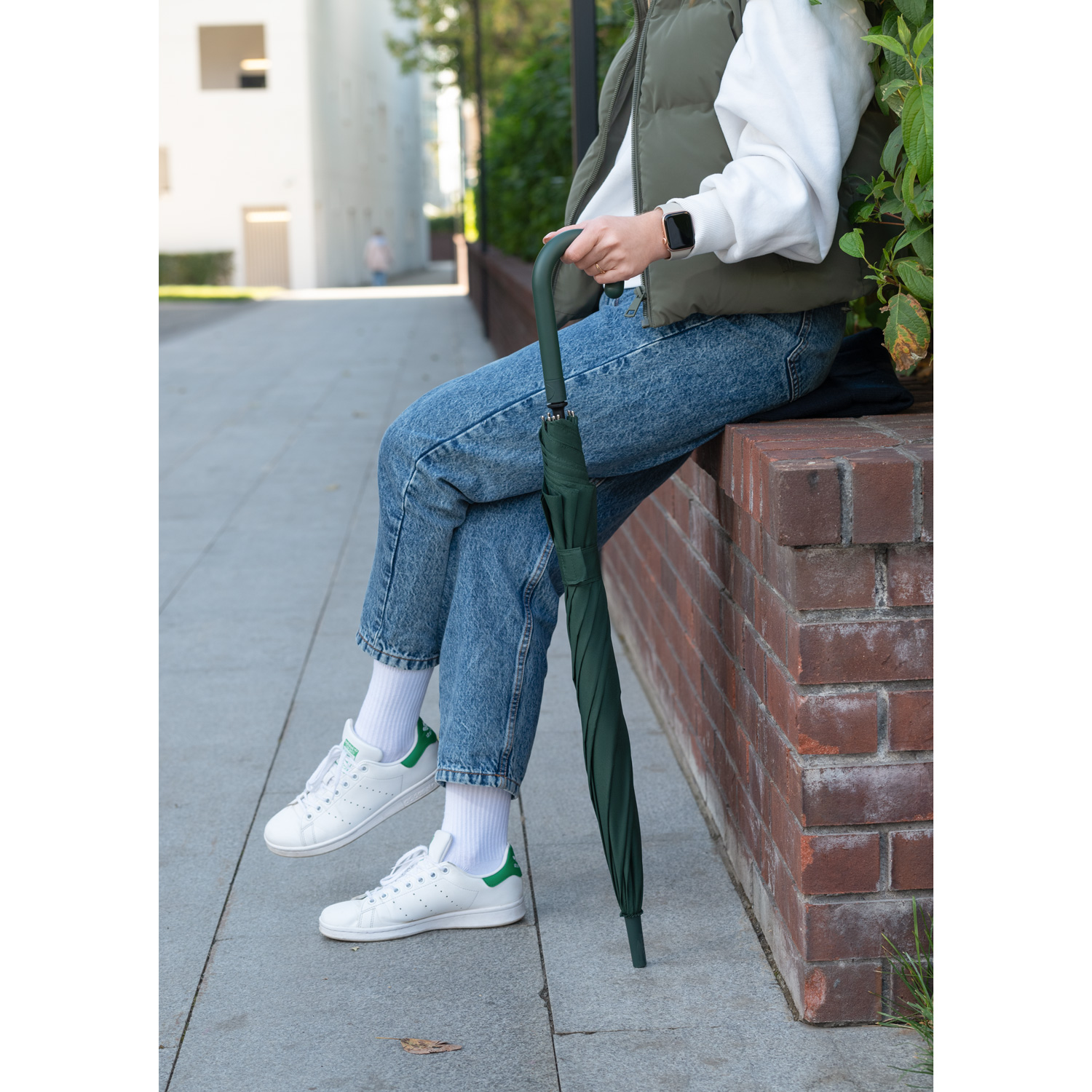 Зонт оснащен системой антиветер, что позволяет спицам не ломаться даже при сильном порыве ветра.