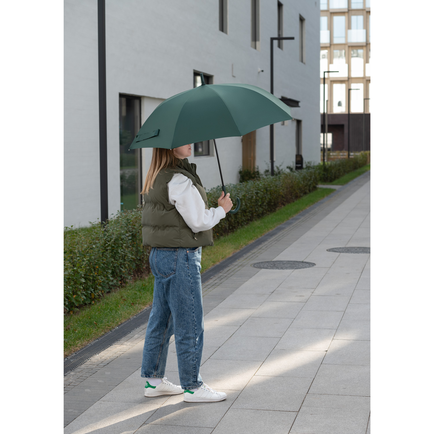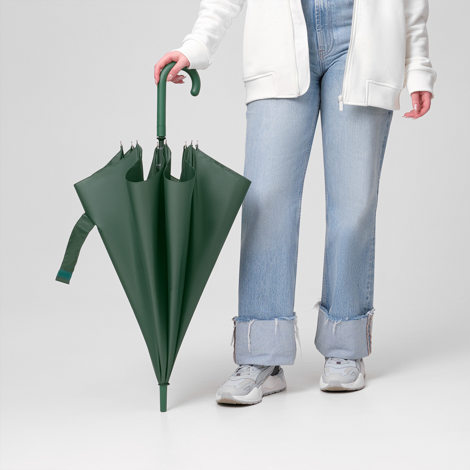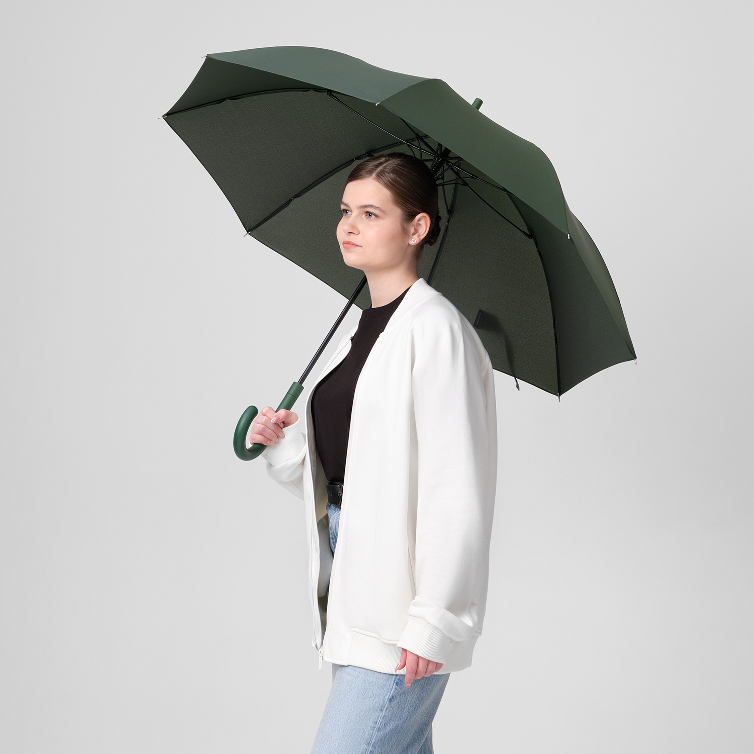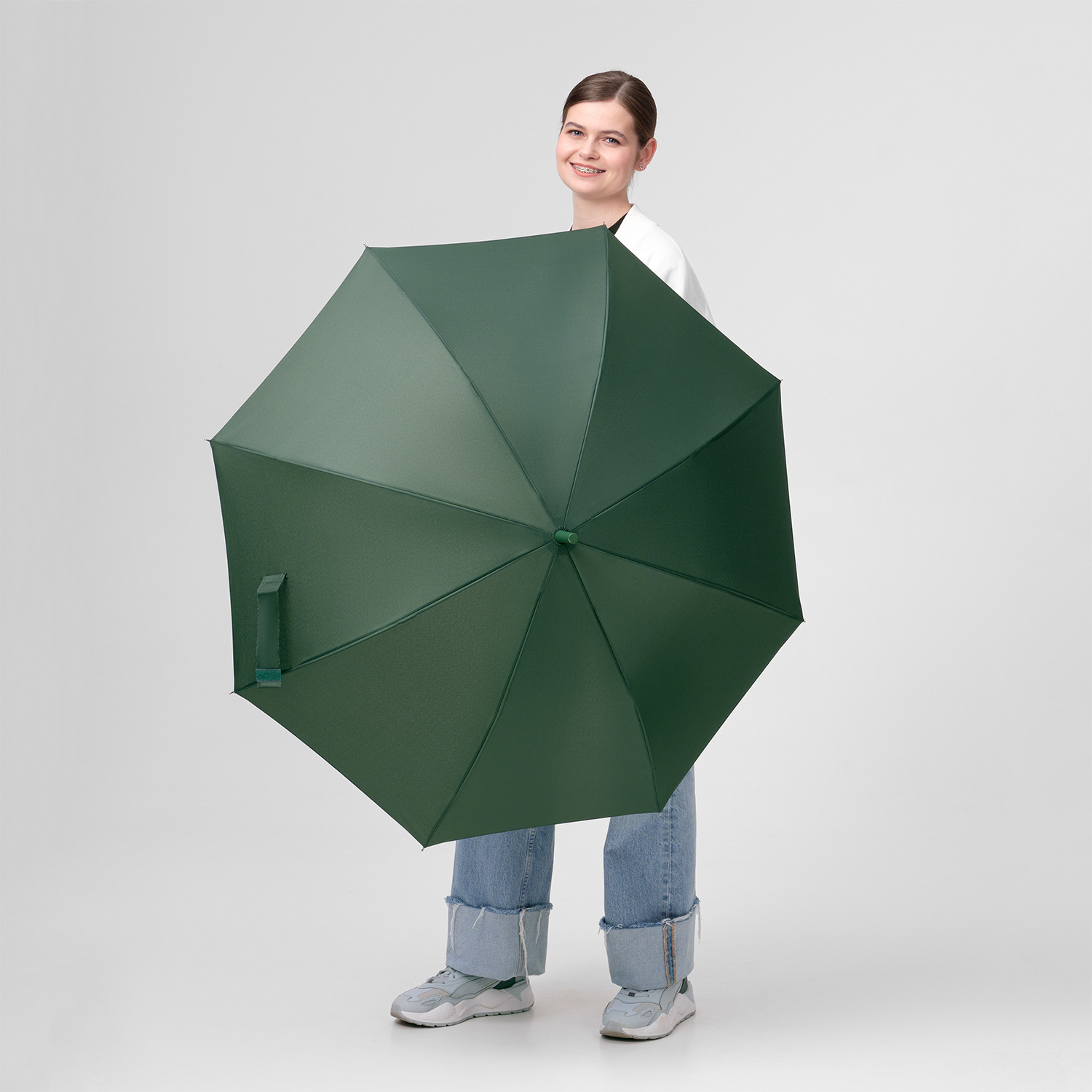 Удобная ручка в цвет купола зонта. PU-покрытие на ручке зонта обеспечивает комфортное и долговечное использование аксессуара: оно устойчиво к истиранию, не скользит в руке и не становится липким.