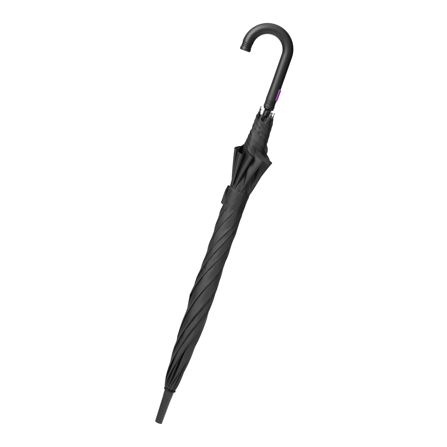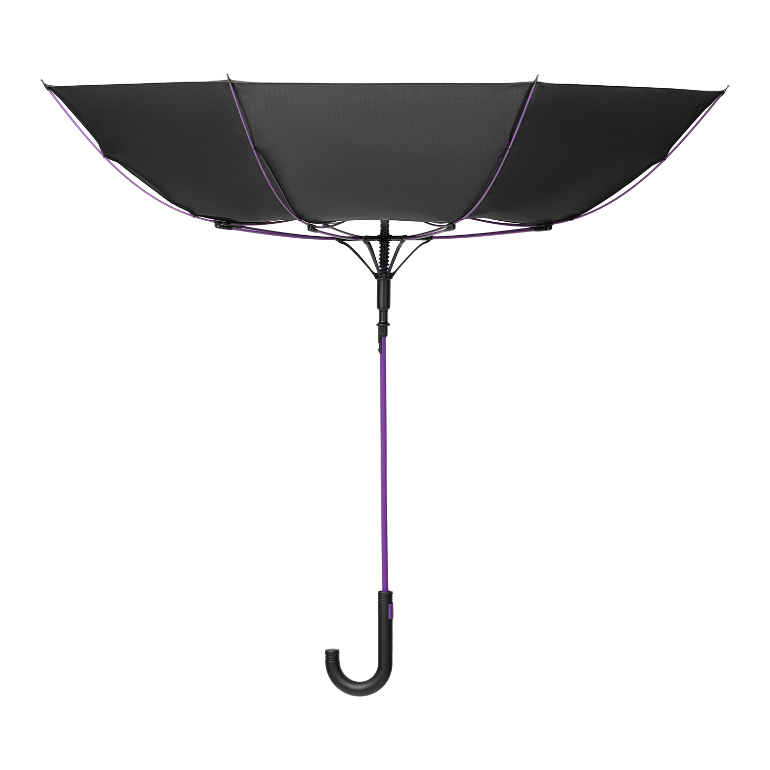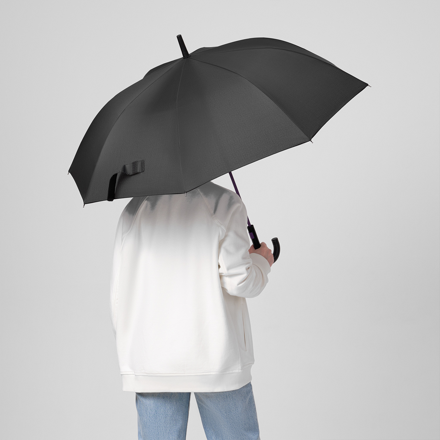 Полуавтоматический зонт быстро раскрывается при нажатии на кнопку. Контрастные цветные спицы окрашены в тон трости и кнопки на ручке. Зонт оснащен гибкими спицами с конструкцией антиветер, которая защищает зонт от поломок при резких порывах ветра. PU-покрытие на ручке зонта обеспечивает комфортное и долговечное использование аксессуара: оно устойчиво к истиранию, не скользит в руке и не становится липким.
