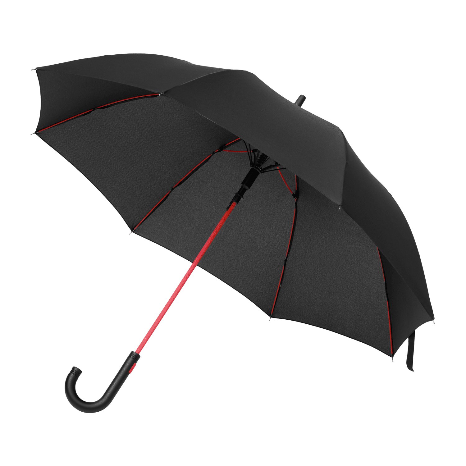 Полуавтоматический зонт быстро раскрывается при нажатии на кнопку. Контрастные цветные спицы окрашены в тон трости и кнопки на ручке. Зонт оснащен гибкими спицами с конструкцией антиветер, которая защищает зонт от поломок при резких порывах ветра. PU-покрытие на ручке зонта обеспечивает комфортное и долговечное использование аксессуара: оно устойчиво к истиранию, не скользит в руке и не становится липким.