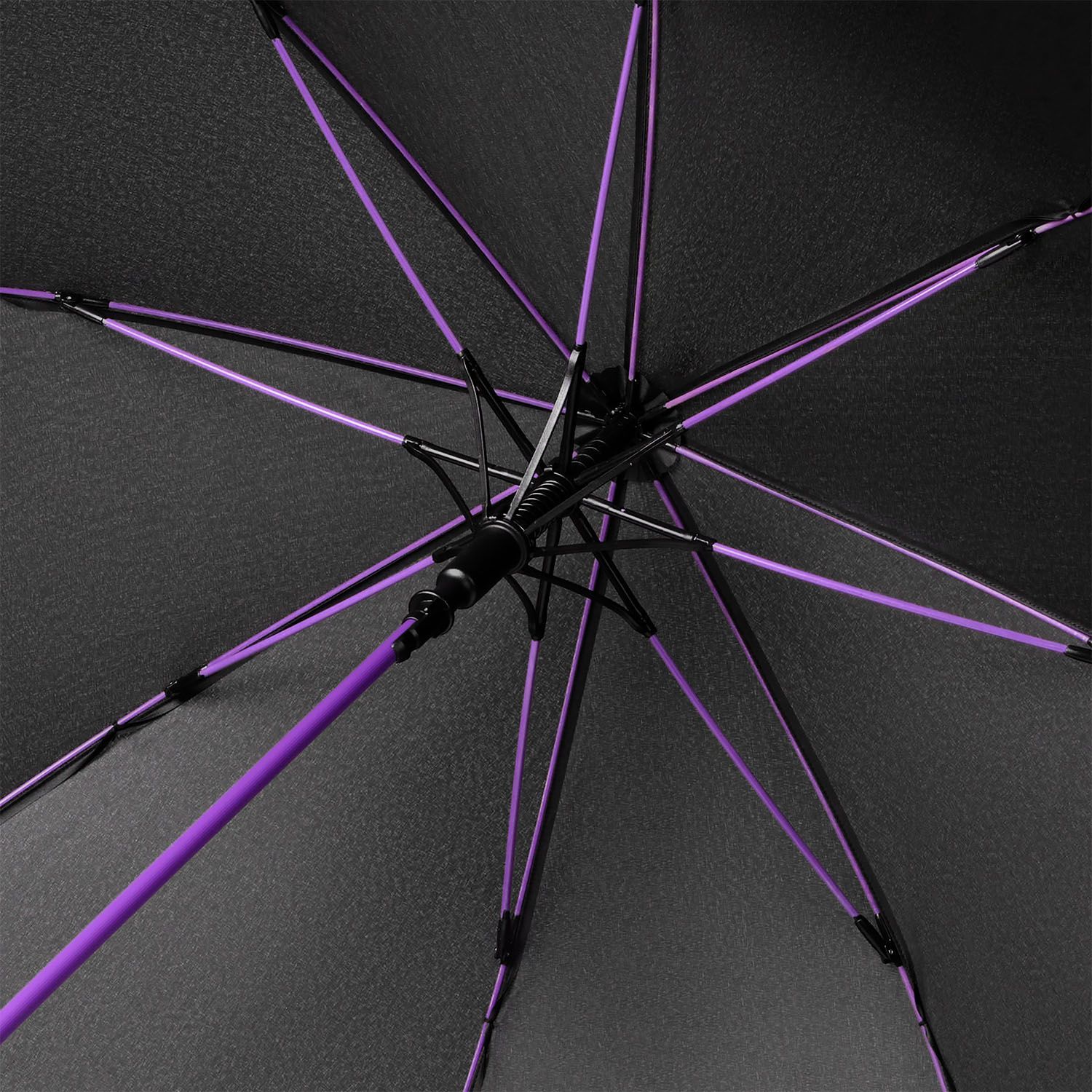 Полуавтоматический зонт быстро раскрывается при нажатии на кнопку. Контрастные цветные спицы окрашены в тон трости и кнопки на ручке. Зонт оснащен гибкими спицами с конструкцией антиветер, которая защищает зонт от поломок при резких порывах ветра. PU-покрытие на ручке зонта обеспечивает комфортное и долговечное использование аксессуара: оно устойчиво к истиранию, не скользит в руке и не становится липким.