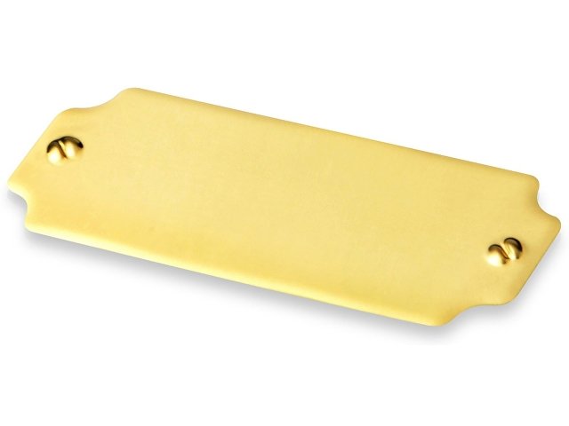 Фигурный шильд со скошенными углами позволяет красиво оформить оригинальный подарок, а золотистый цвет придает ему солидности. Небольшие размеры позволяют разместить шильд даже на фоторамке или небольшой визитнице.