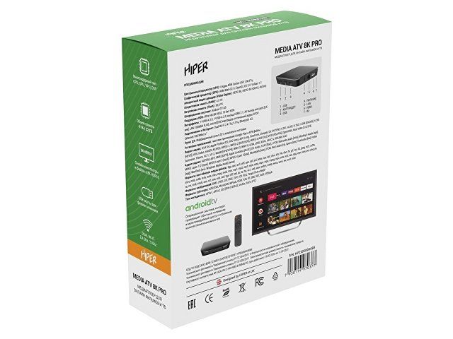HIPER MEDIA ATV 8K Pro — это компактный медиаплеер для онлайн просмотра фильмов и сериалов, а также ТВ программ в разрешении 8К. Просто подсоедините его к проектору, монитору или телевизору с разъемом HDMI, чтобы превратить ваше устройство в Smart TV. Останется лишь подключить его к сети Wi-Fi (устройство поддерживает сети Wi-Fi 2.4 и 5GHz), чтобы начать наслаждаться контентом в 8К. MEDIA ATV 8K Pro поддерживает функцию беспроводной передачи изображения и звука со смартфона или планшета на большой экран, благодаря технологиям AirPlay и Miracast.