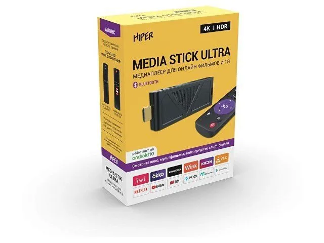 Комплектность: устройство hiper media stick ultra, пульт ду, hdmi удлинитель, microusb кабель, адаптер питания, внешний ик приемник