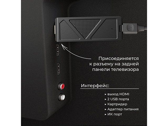 Компактное устройство работает под управлением Android TV UI (на базе Android 10 AOSP). Программная оболочка оптимизирована, и 1 Гб встроенной RAM памяти достаточно для плавной работы интерфейса. За обработку видеопотока в разрешении 4к отвечает связка из мощного 4-ядерного процессора ARM Cortex-A53 и графического процессора ARM Mali-450 c OpenGL ES 2.0. Аудио- и видеоконтент сохраняется на встроенном накопителе объемом 8 Гб, а при необходимости память можно расширить за счет карт памяти формата microSDHC.