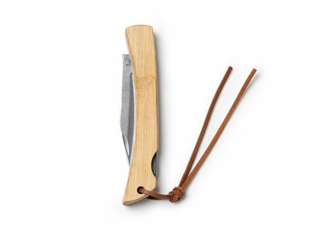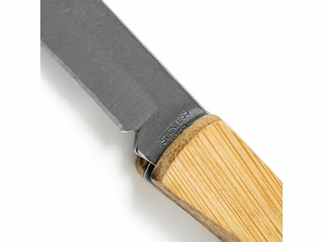 Нож из нержавеющей стали с рукояткой из натурального бамбука.