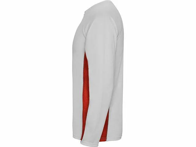 Футболка с длинным рукавом реглан из двух комбинируемых полотен. Основное полотно из структурного полотна, а боковые вставки и внутренняя сторона рукава из микроперфорированного полотна. Круглый вырез горловины дополнительно укреплен плоской строчкой. Комфортная и удобная модель